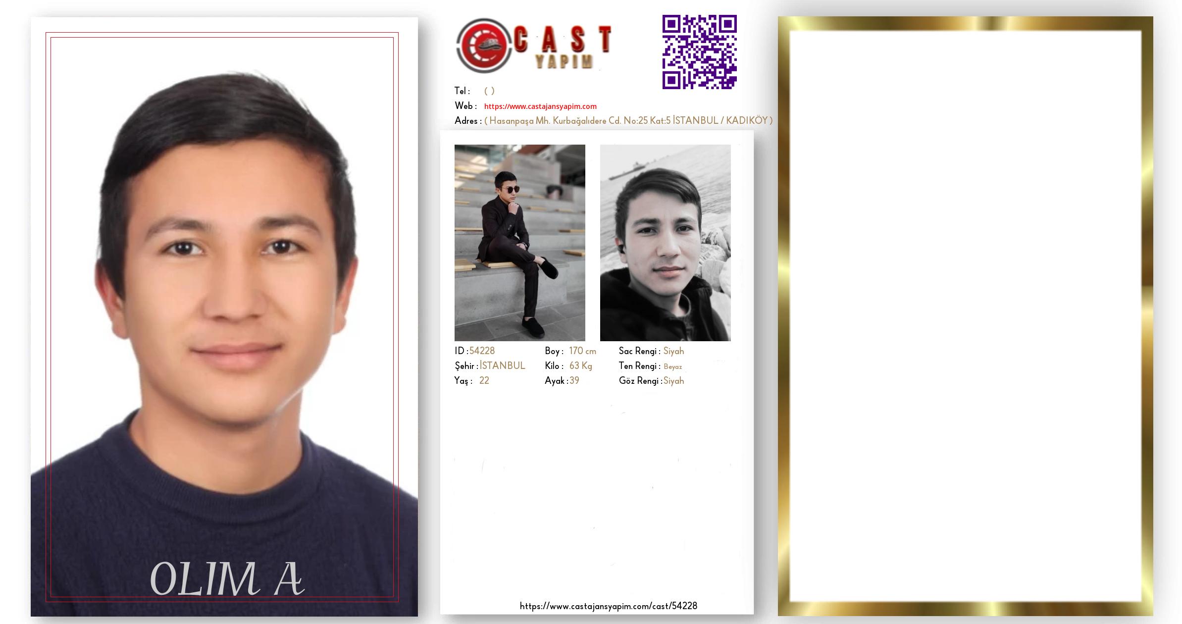 Merhaba, ben OLIM A. İSTANBUL şehrinde yaşıyorum ve 22 yaşındayım. Genel özelliklerim arasında boyum 170 cm, kilom 63 kg, saç rengim Siyah, göz rengim Siyah, ten rengim Beyaz.