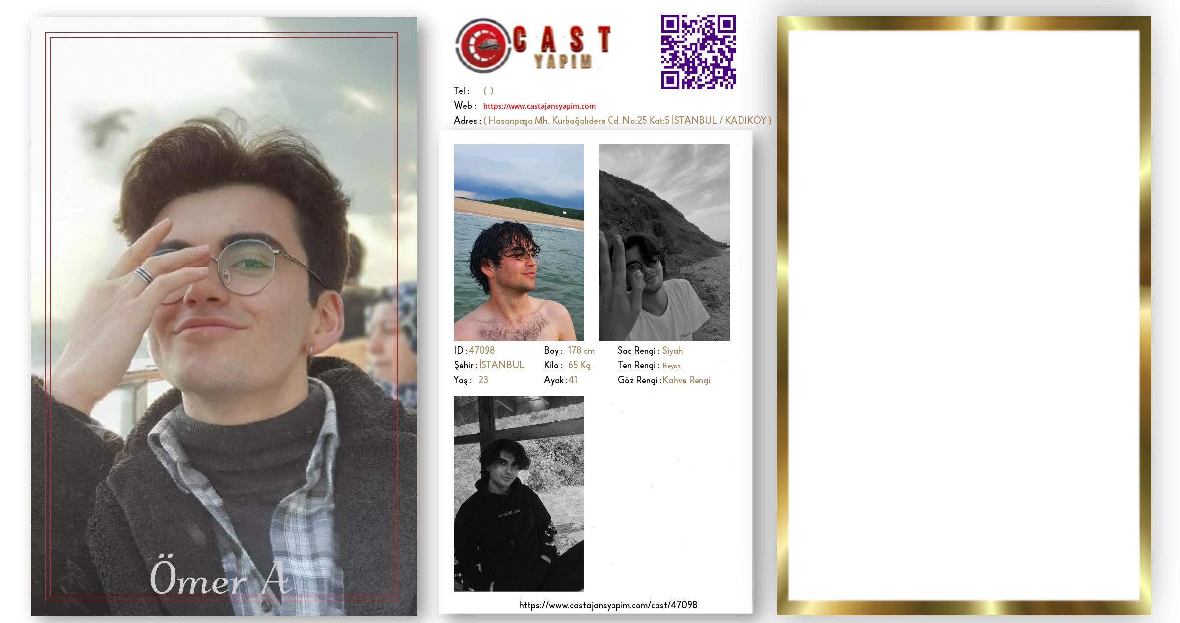 Merhaba, ben Ömer A. İSTANBUL şehrinde yaşıyorum ve 23 yaşındayım. Genel özelliklerim arasında boyum 178 cm, kilom 65 kg, saç rengim Siyah, göz rengim Kahve Rengi, ten rengim Beyaz.