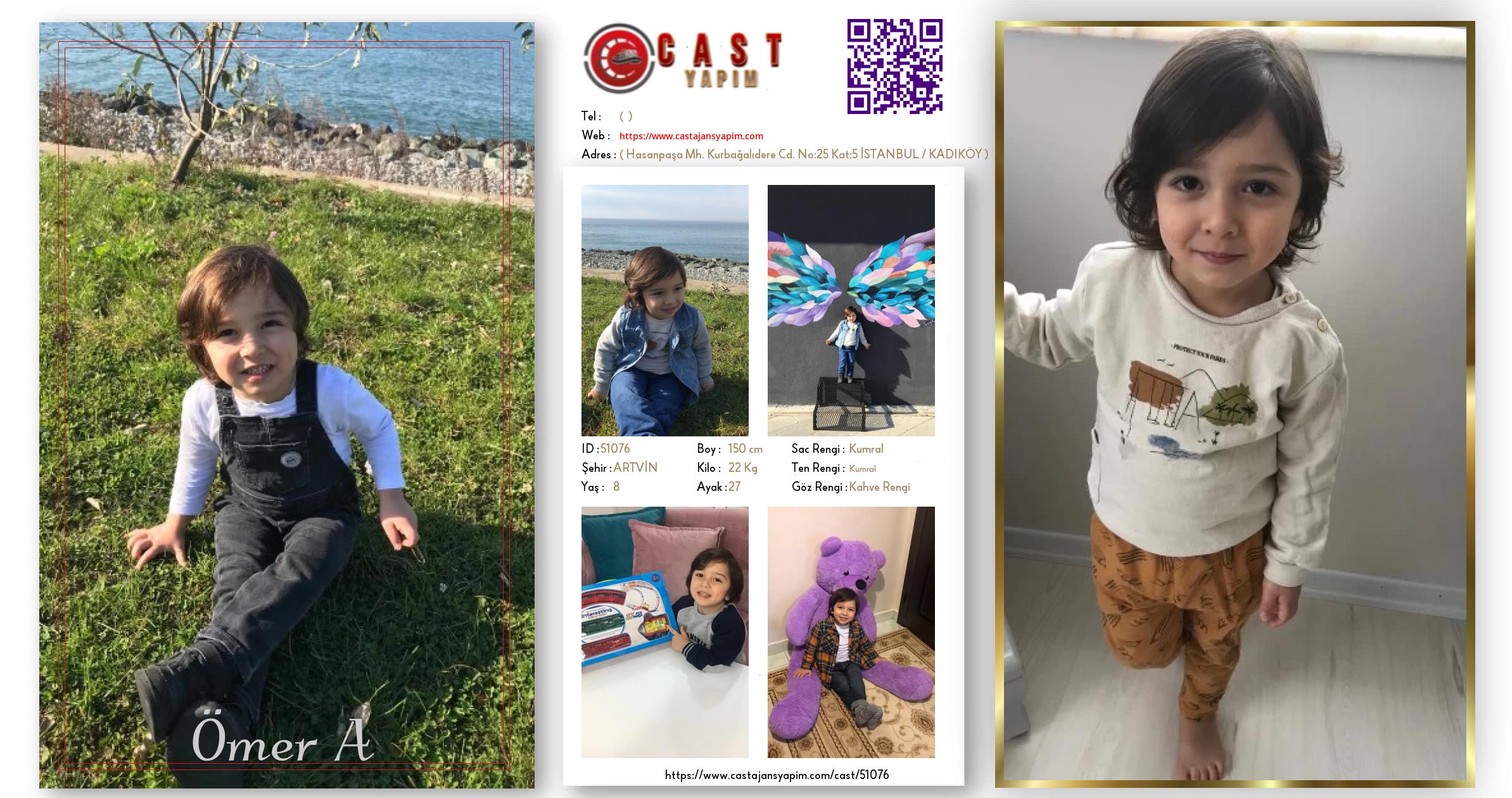Merhaba, ben Ömer A. ARTVİN şehrinde yaşıyorum ve 8 yaşındayım. Genel özelliklerim arasında boyum 150 cm, kilom 22 kg, saç rengim Kumral, göz rengim Kahve Rengi, ten rengim Kumral.