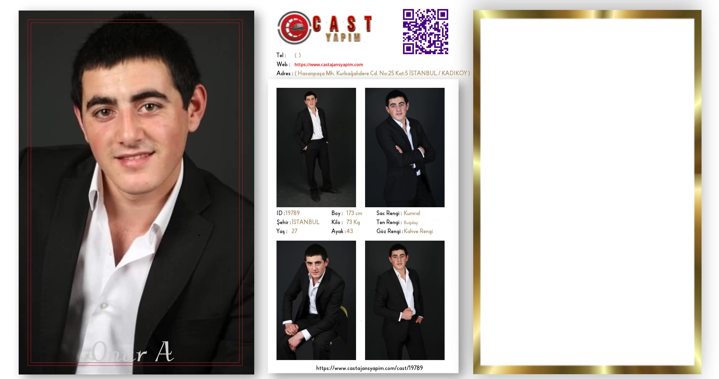 Merhaba, ben Onur A. İSTANBUL şehrinde yaşıyorum ve 27 yaşındayım. Genel özelliklerim arasında boyum 173 cm, kilom 73 kg, saç rengim Kumral, göz rengim Kahve Rengi, ten rengim Buğday.
