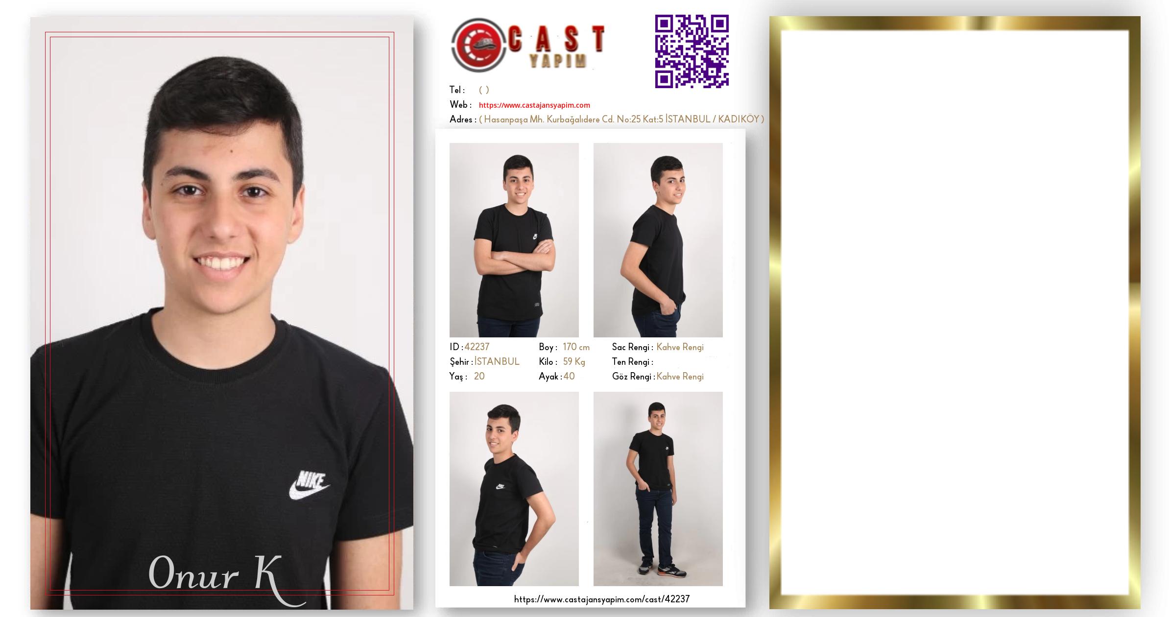 Merhaba, ben Onur K. İSTANBUL şehrinde yaşıyorum ve 20 yaşındayım. Genel özelliklerim arasında boyum 170 cm, kilom 59 kg, saç rengim Kahve Rengi, göz rengim Kahve Rengi.
