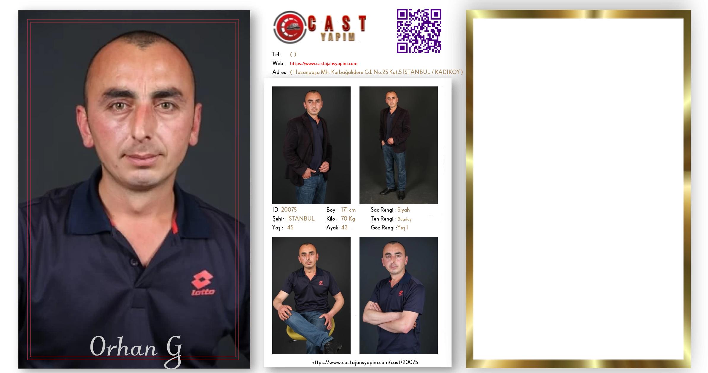 Merhaba, ben Orhan G. İSTANBUL şehrinde yaşıyorum ve 45 yaşındayım. Genel özelliklerim arasında boyum 171 cm, kilom 70 kg, saç rengim Siyah, göz rengim Yeşil, ten rengim Buğday.