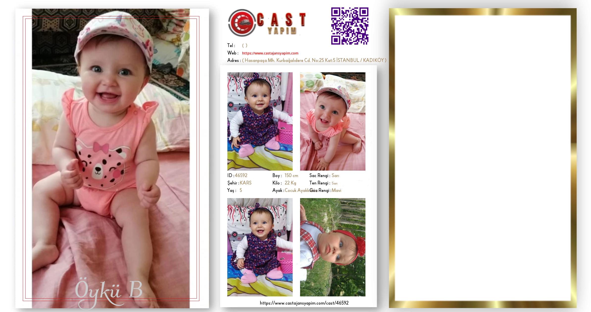 Merhaba, ben Öykü. KARS şehrinde yaşıyorum ve 5 yaşındayım. Genel özelliklerim arasında boyum 150 cm, kilom 22 kg, saç rengim Sarı, göz rengim Mavi, ten rengim Sarı.