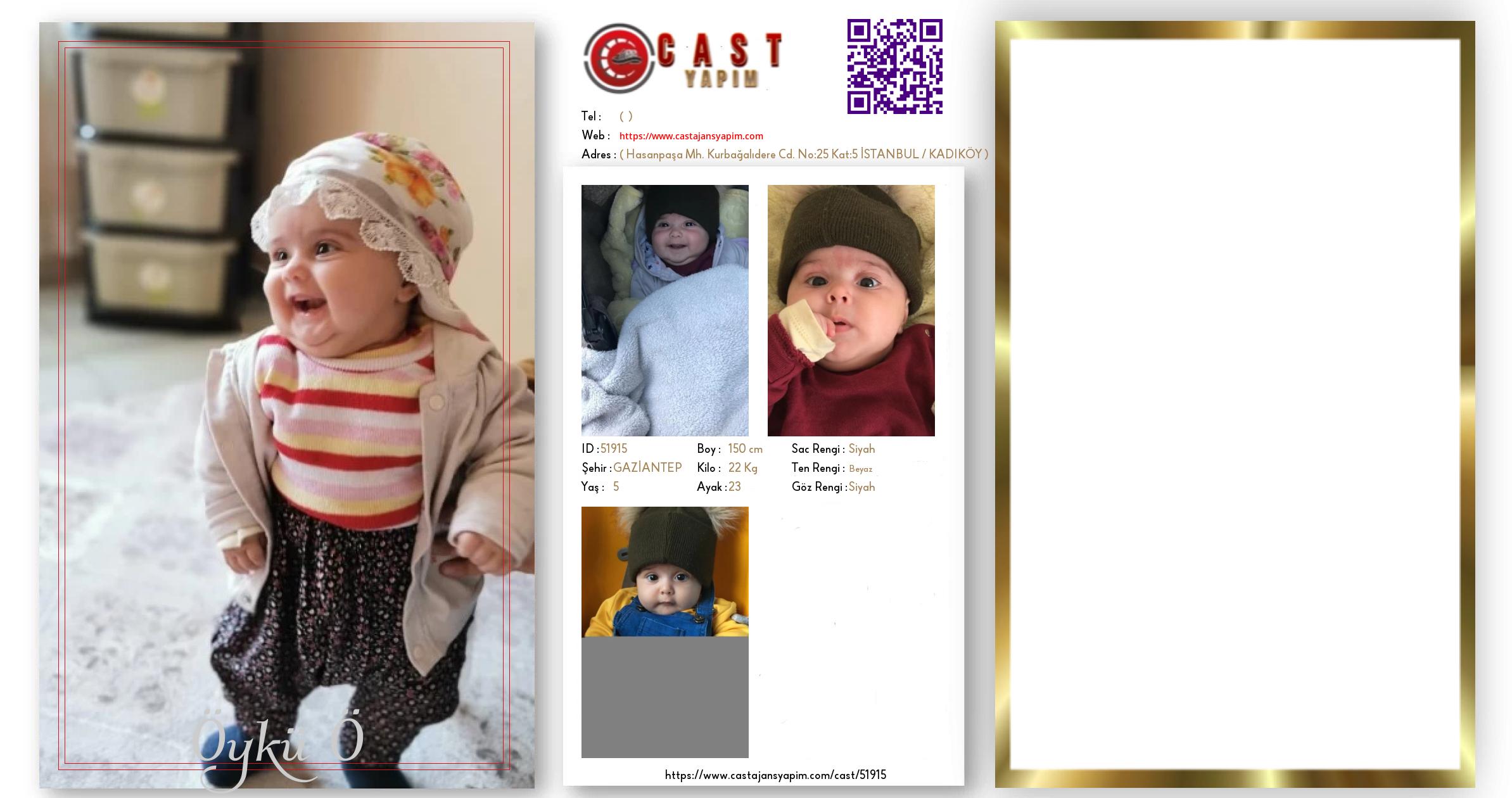 Merhaba, ben Öykü. GAZİANTEP şehrinde yaşıyorum ve 5 yaşındayım. Genel özelliklerim arasında boyum 150 cm, kilom 22 kg, saç rengim Siyah, göz rengim Siyah, ten rengim Beyaz.