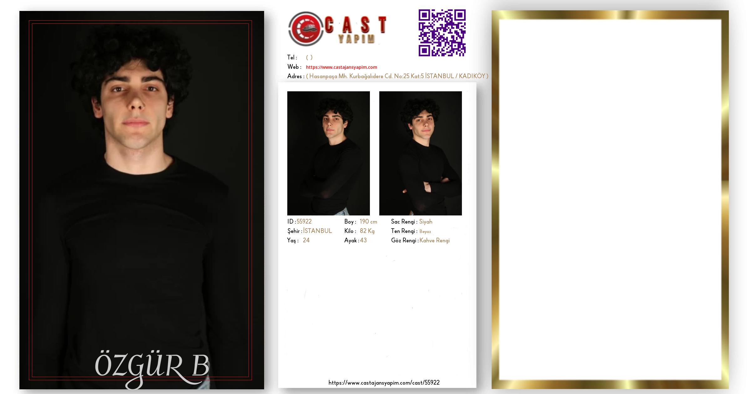 Merhaba, ben ÖZGÜR B. İSTANBUL şehrinde yaşıyorum ve 24 yaşındayım. Genel özelliklerim arasında boyum 190 cm, kilom 82 kg, saç rengim Siyah, göz rengim Kahve Rengi, ten rengim Beyaz.