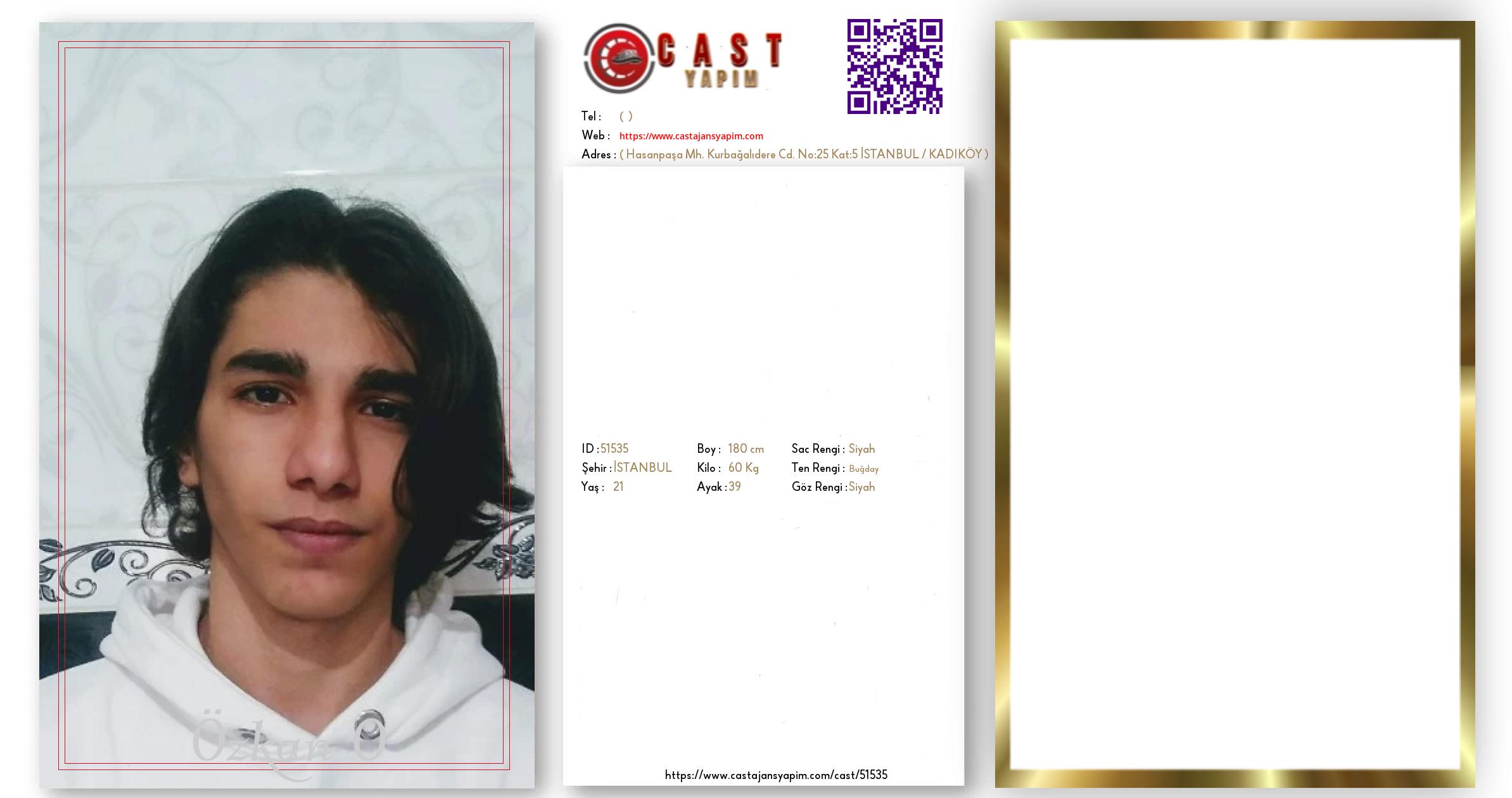 Merhaba, ben Özkan O. İSTANBUL şehrinde yaşıyorum ve 21 yaşındayım. Genel özelliklerim arasında boyum 180 cm, kilom 60 kg, saç rengim Siyah, göz rengim Siyah, ten rengim Buğday.