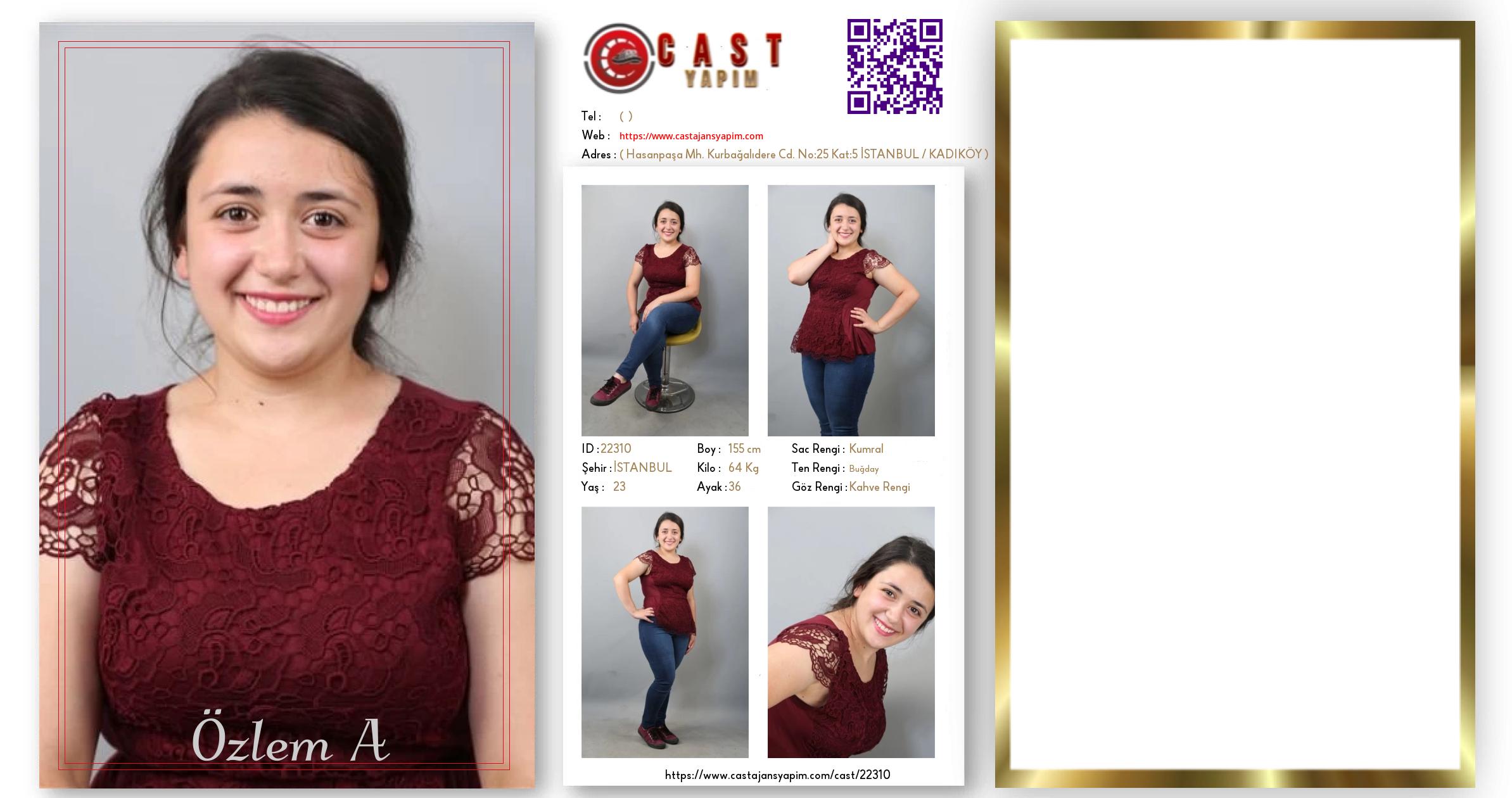 Merhaba, ben Özlem A. İSTANBUL şehrinde yaşıyorum ve 23 yaşındayım. Genel özelliklerim arasında boyum 155 cm, kilom 64 kg, saç rengim Kumral, göz rengim Kahve Rengi, ten rengim Buğday.