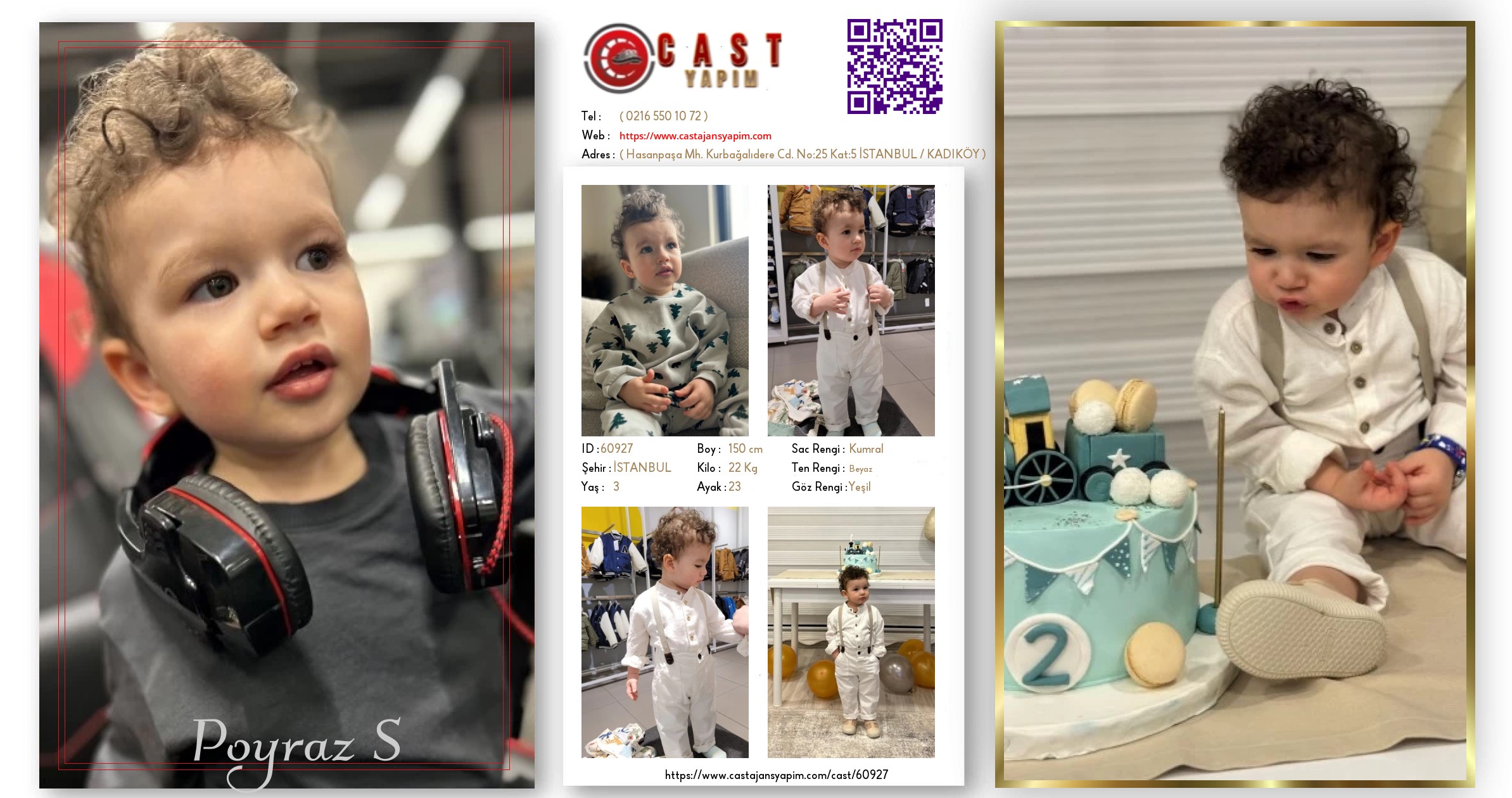 Merhaba, ben Poyraz. İSTANBUL şehrinde yaşıyorum ve 4 yaşındayım. Genel özelliklerim arasında boyum 150 cm, kilom 22 kg, saç rengim Kumral, göz rengim Yeşil, ten rengim Beyaz.