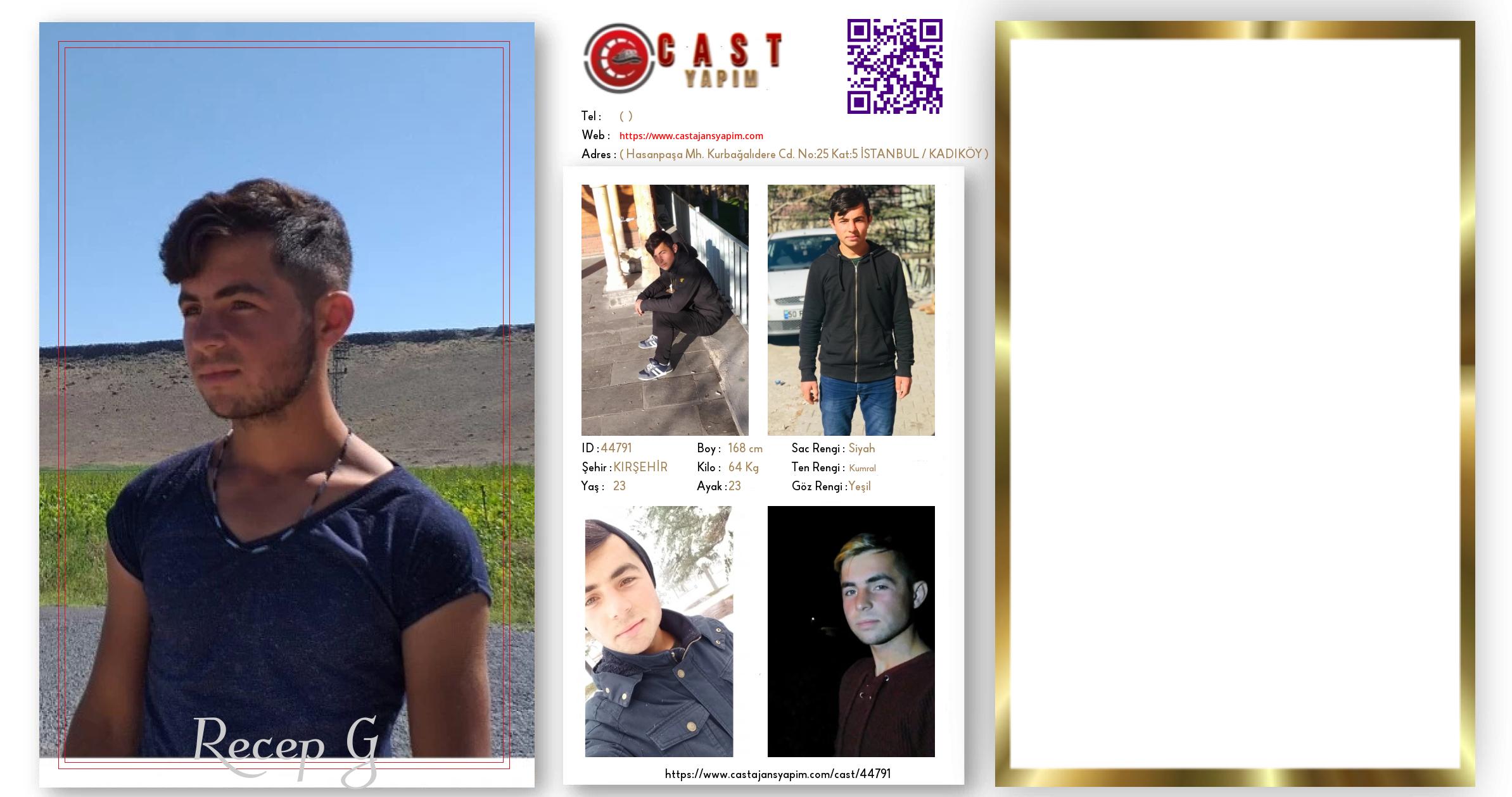 Merhaba, ben Recep. KIRŞEHİR şehrinde yaşıyorum ve 23 yaşındayım. Genel özelliklerim arasında boyum 168 cm, kilom 64 kg, saç rengim Siyah, göz rengim Yeşil, ten rengim Kumral.