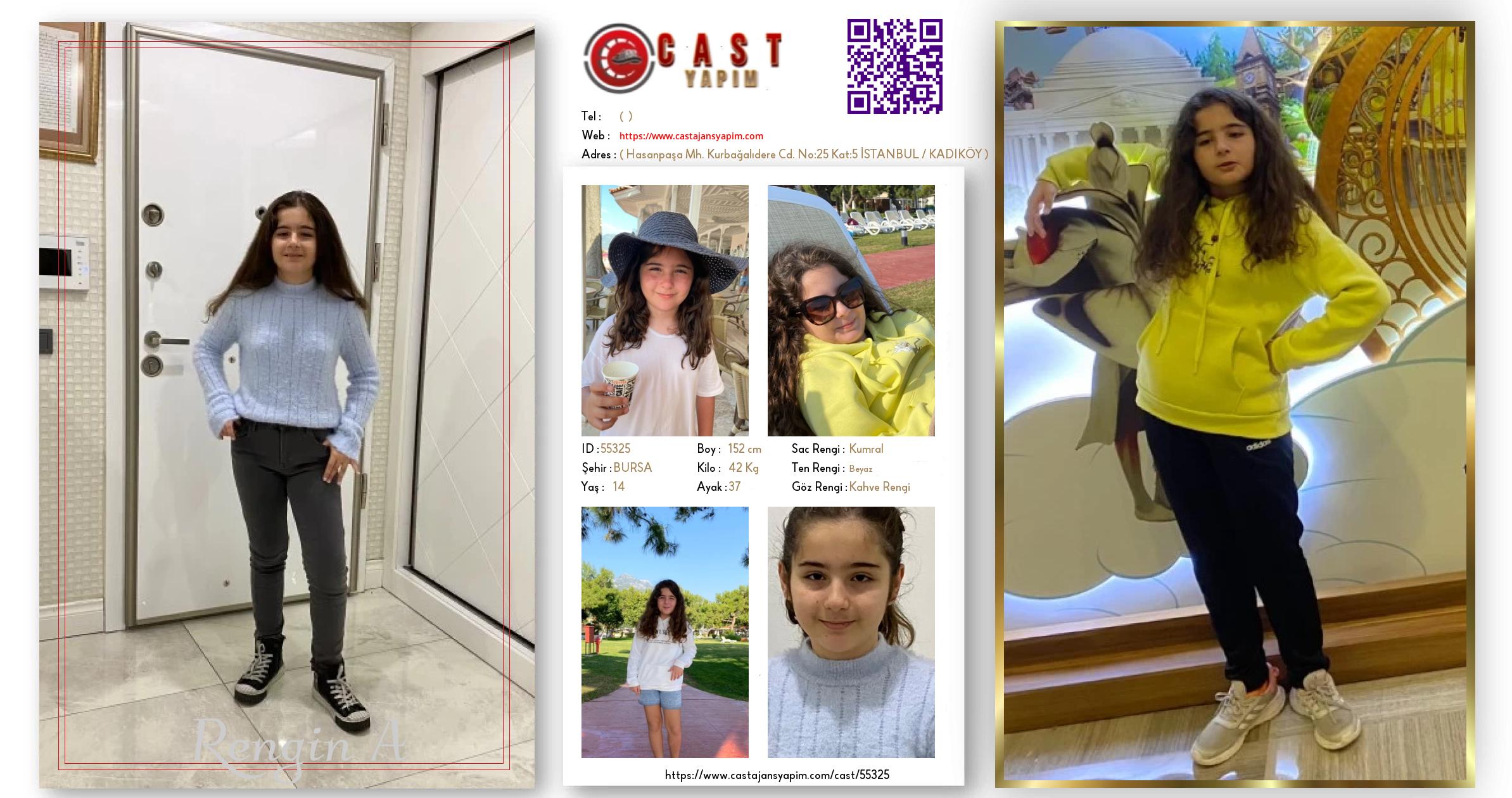 Merhaba, ben Rengin Delal. BURSA şehrinde yaşıyorum ve 14 yaşındayım. Genel özelliklerim arasında boyum 152 cm, kilom 42 kg, saç rengim Kumral, göz rengim Kahve Rengi, ten rengim Beyaz.