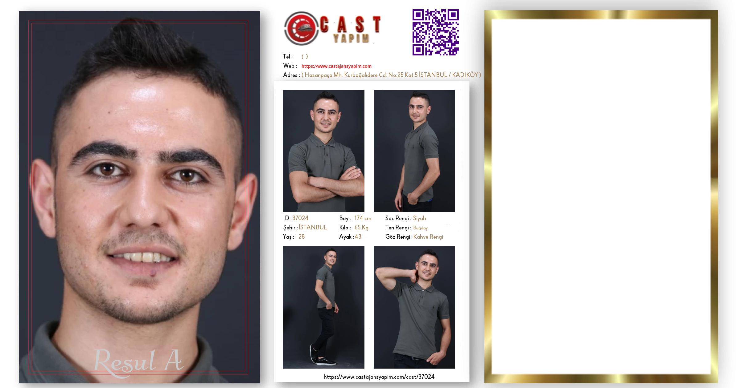Merhaba, ben Resul A. İSTANBUL şehrinde yaşıyorum ve 28 yaşındayım. Genel özelliklerim arasında boyum 174 cm, kilom 65 kg, saç rengim Siyah, göz rengim Kahve Rengi, ten rengim Buğday.