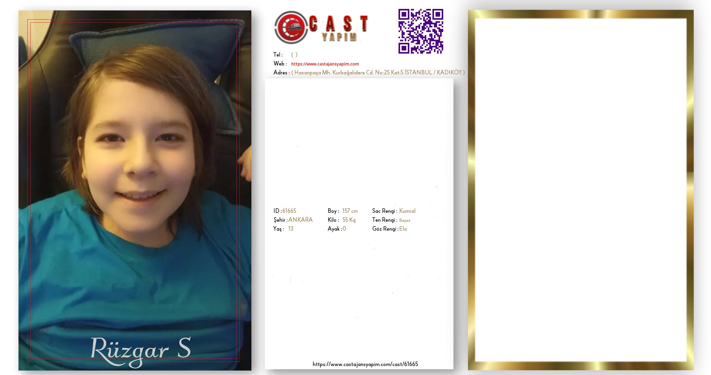 Merhaba, ben Rüzgar. ANKARA şehrinde yaşıyorum ve 13 yaşındayım. Genel özelliklerim arasında boyum 157 cm, kilom 55 kg, saç rengim Kumral, göz rengim Ela, ten rengim Beyaz.