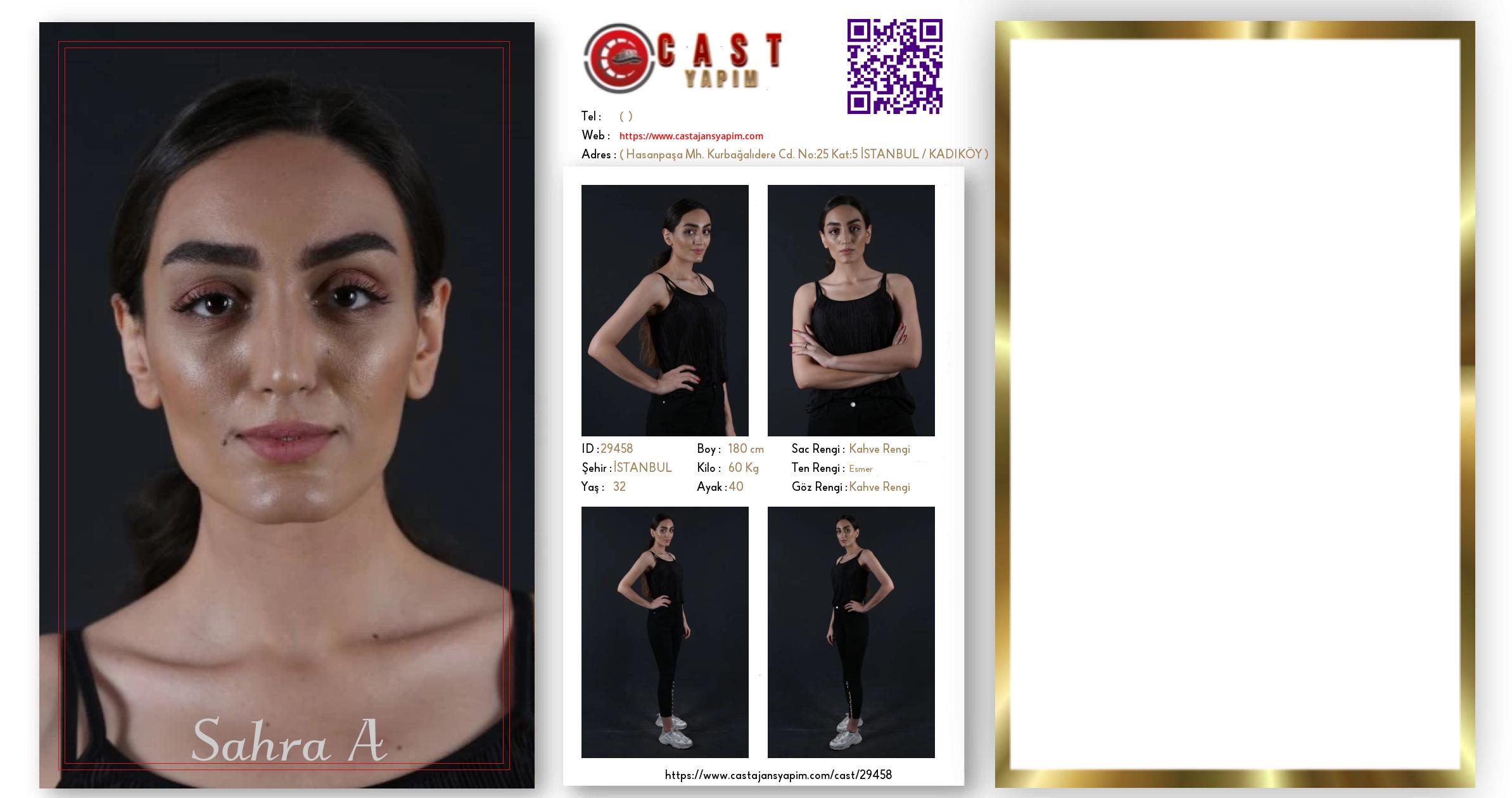 Merhaba, ben Sahra. İSTANBUL şehrinde yaşıyorum ve 32 yaşındayım. Genel özelliklerim arasında boyum 180 cm, kilom 60 kg, saç rengim Kahve Rengi, göz rengim Kahve Rengi, ten rengim Esmer.
