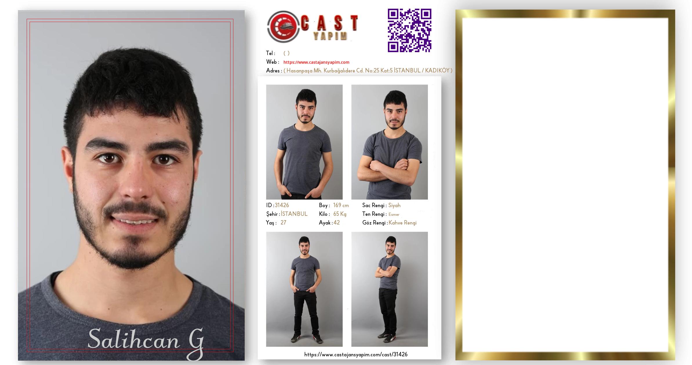 Merhaba, ben Salihcan. İSTANBUL şehrinde yaşıyorum ve 27 yaşındayım. Genel özelliklerim arasında boyum 169 cm, kilom 65 kg, saç rengim Siyah, göz rengim Kahve Rengi, ten rengim Esmer.