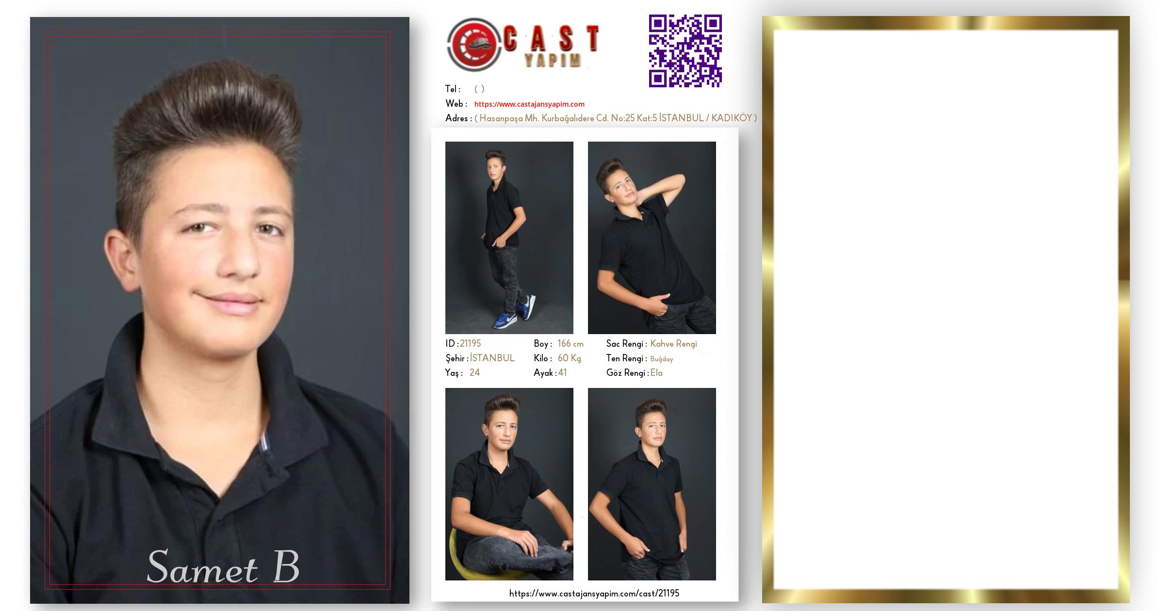 Merhaba, ben Samet B. İSTANBUL şehrinde yaşıyorum ve 24 yaşındayım. Genel özelliklerim arasında boyum 166 cm, kilom 60 kg, saç rengim Kahve Rengi, göz rengim Ela, ten rengim Buğday.