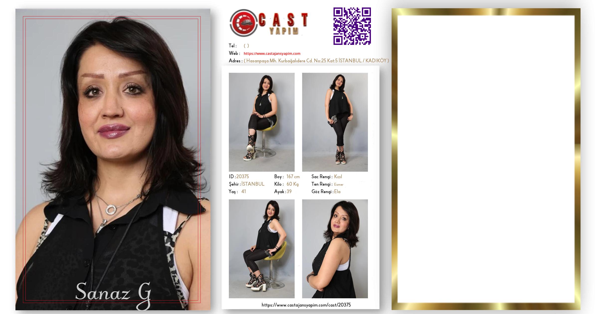 Merhaba, ben Sanaz Zelyefkar. İSTANBUL şehrinde yaşıyorum ve 41 yaşındayım. Genel özelliklerim arasında boyum 167 cm, kilom 60 kg, saç rengim Kızıl, göz rengim Ela, ten rengim Esmer.