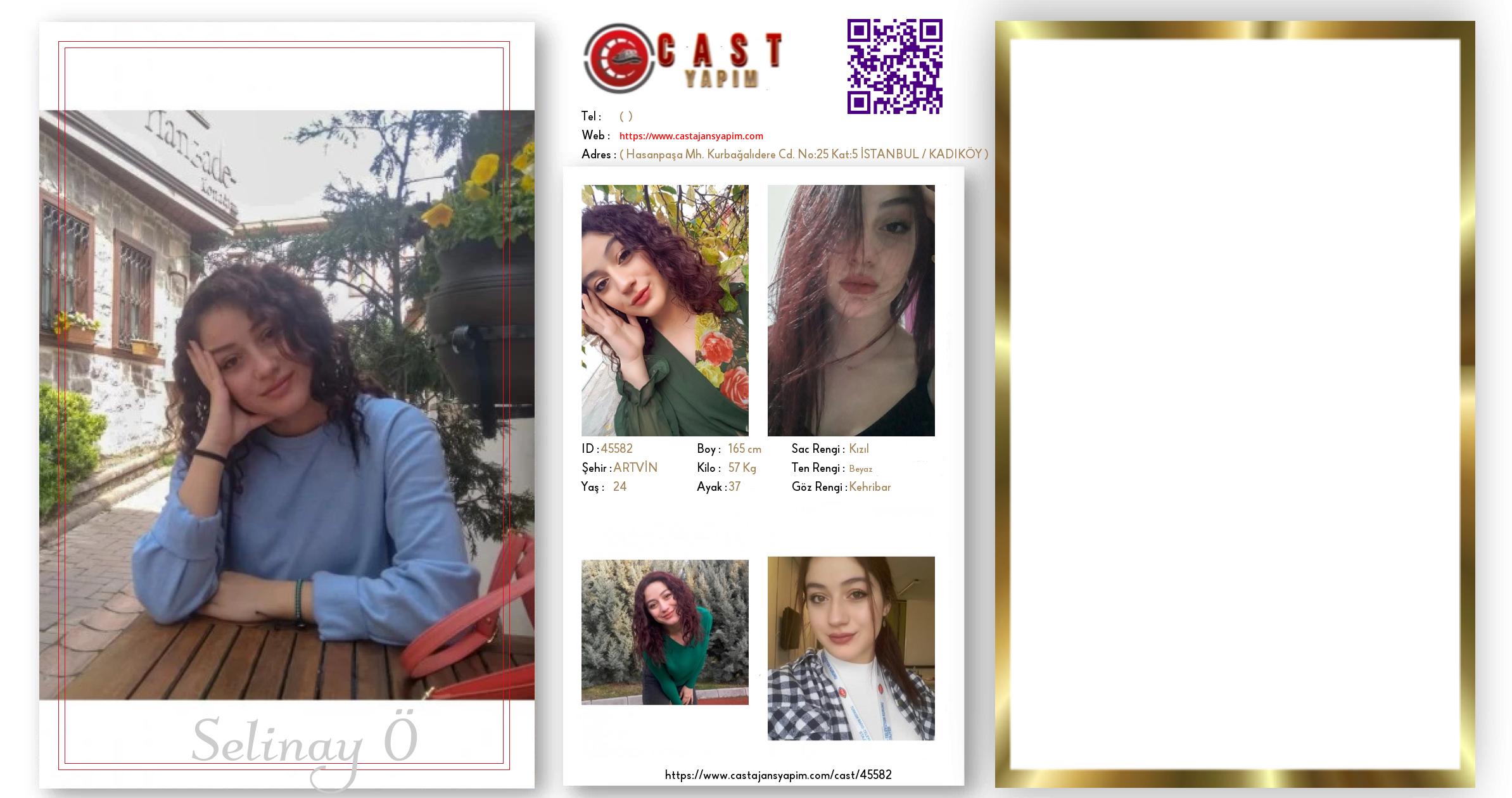 Merhaba, ben Selinay Sena. ARTVİN şehrinde yaşıyorum ve 24 yaşındayım. Genel özelliklerim arasında boyum 165 cm, kilom 57 kg, saç rengim Kızıl, göz rengim Kehribar, ten rengim Beyaz.