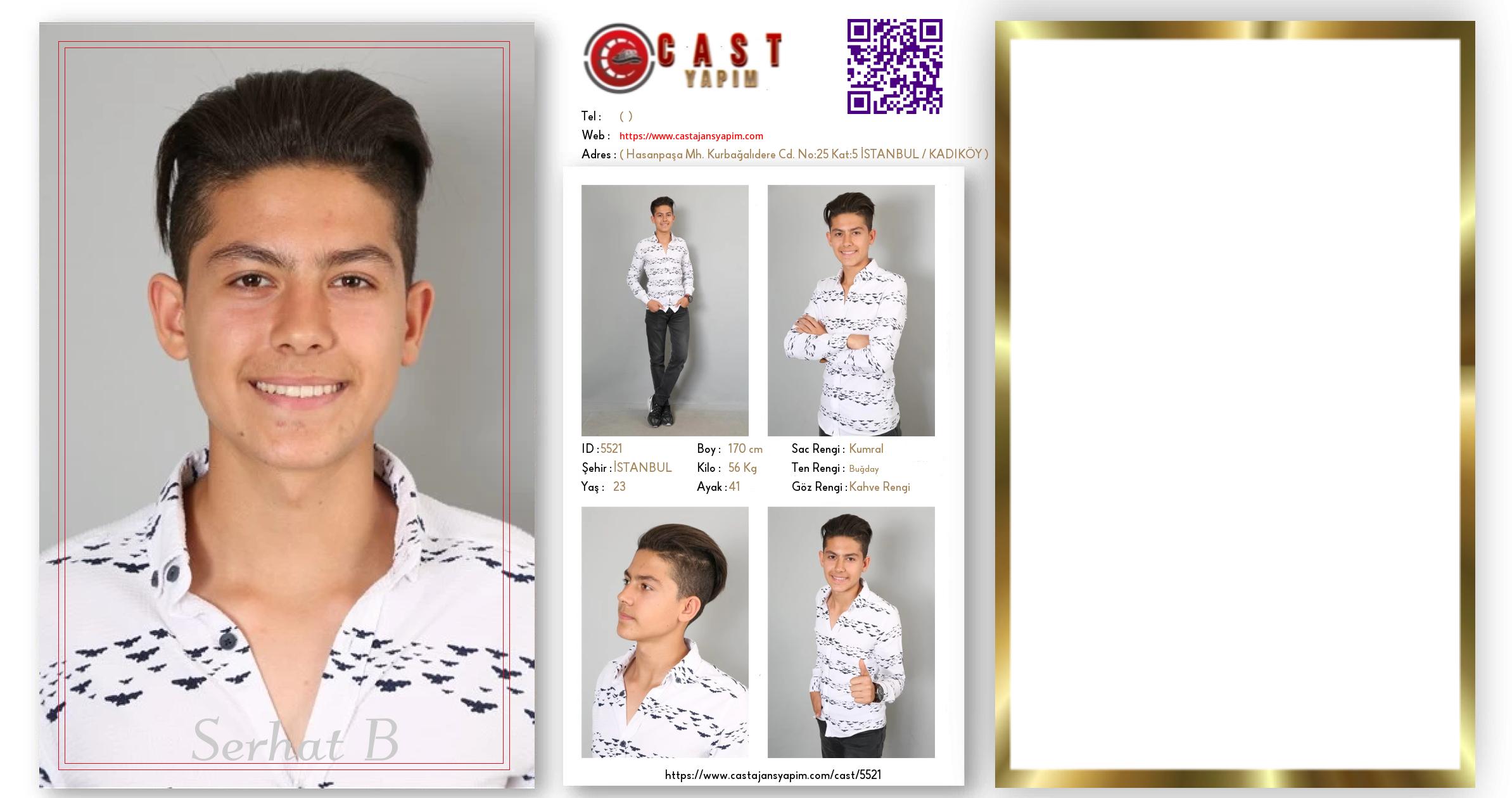 Merhaba, ben Serhat B. İSTANBUL şehrinde yaşıyorum ve 23 yaşındayım. Genel özelliklerim arasında boyum 170 cm, kilom 56 kg, saç rengim Kumral, göz rengim Kahve Rengi, ten rengim Buğday.