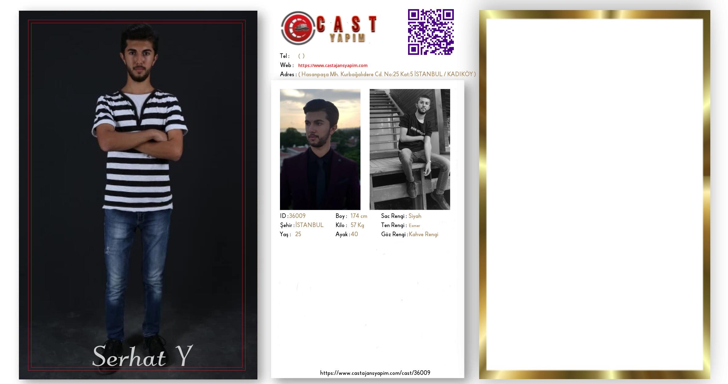 Merhaba, ben Serhat Y. İSTANBUL şehrinde yaşıyorum ve 25 yaşındayım. Genel özelliklerim arasında boyum 174 cm, kilom 57 kg, saç rengim Siyah, göz rengim Kahve Rengi, ten rengim Esmer.