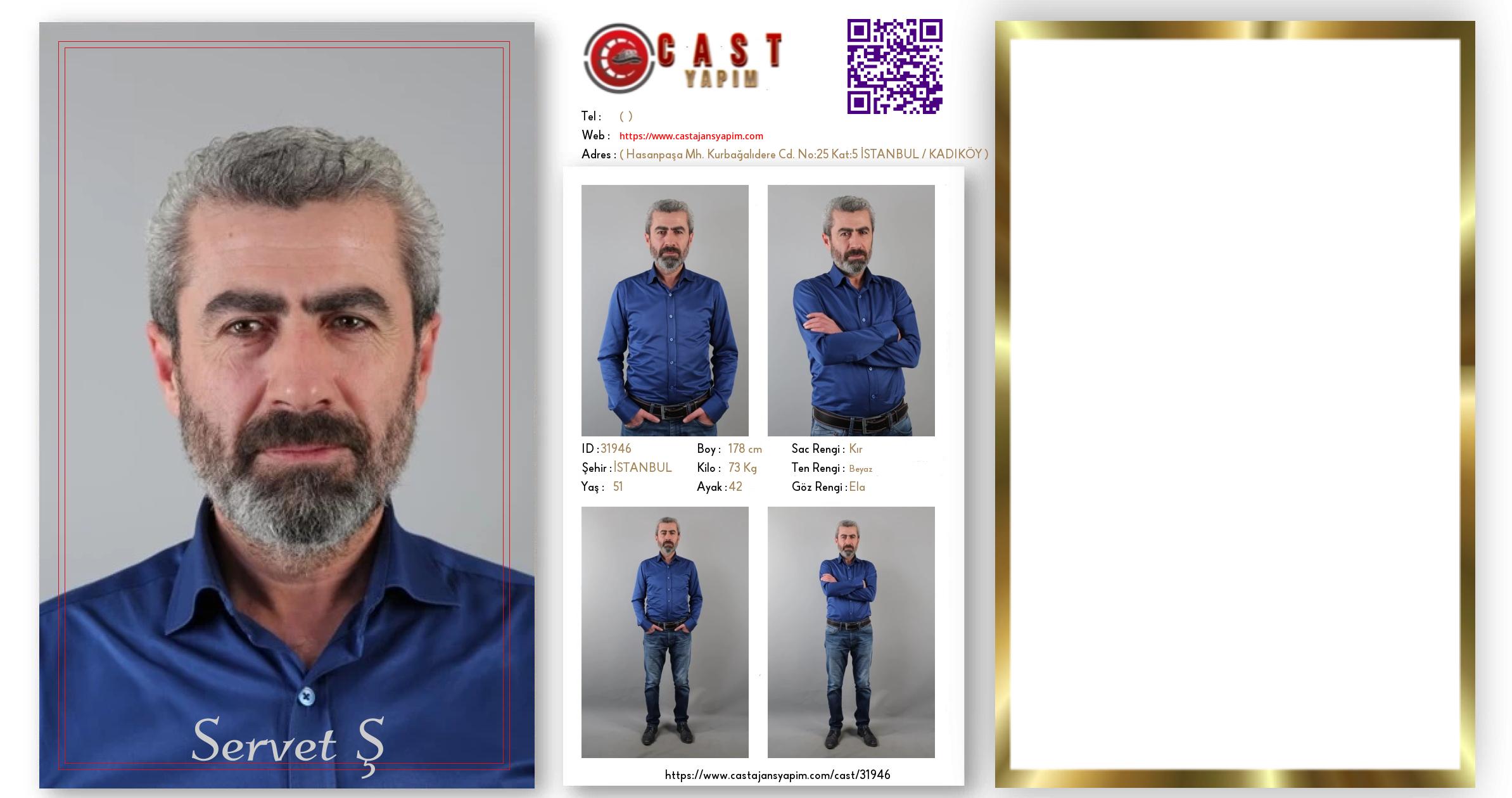 Merhaba, ben Servet. İSTANBUL şehrinde yaşıyorum ve 51 yaşındayım. Genel özelliklerim arasında boyum 178 cm, kilom 73 kg, saç rengim Kır, göz rengim Ela, ten rengim Beyaz.