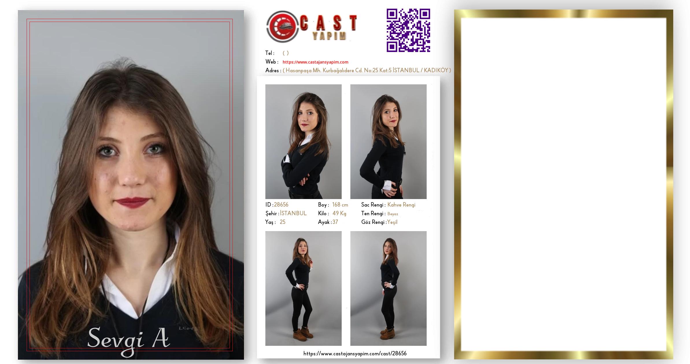 Merhaba, ben Sevgi A. İSTANBUL şehrinde yaşıyorum ve 25 yaşındayım. Genel özelliklerim arasında boyum 168 cm, kilom 49 kg, saç rengim Kahve Rengi, göz rengim Yeşil, ten rengim Beyaz.