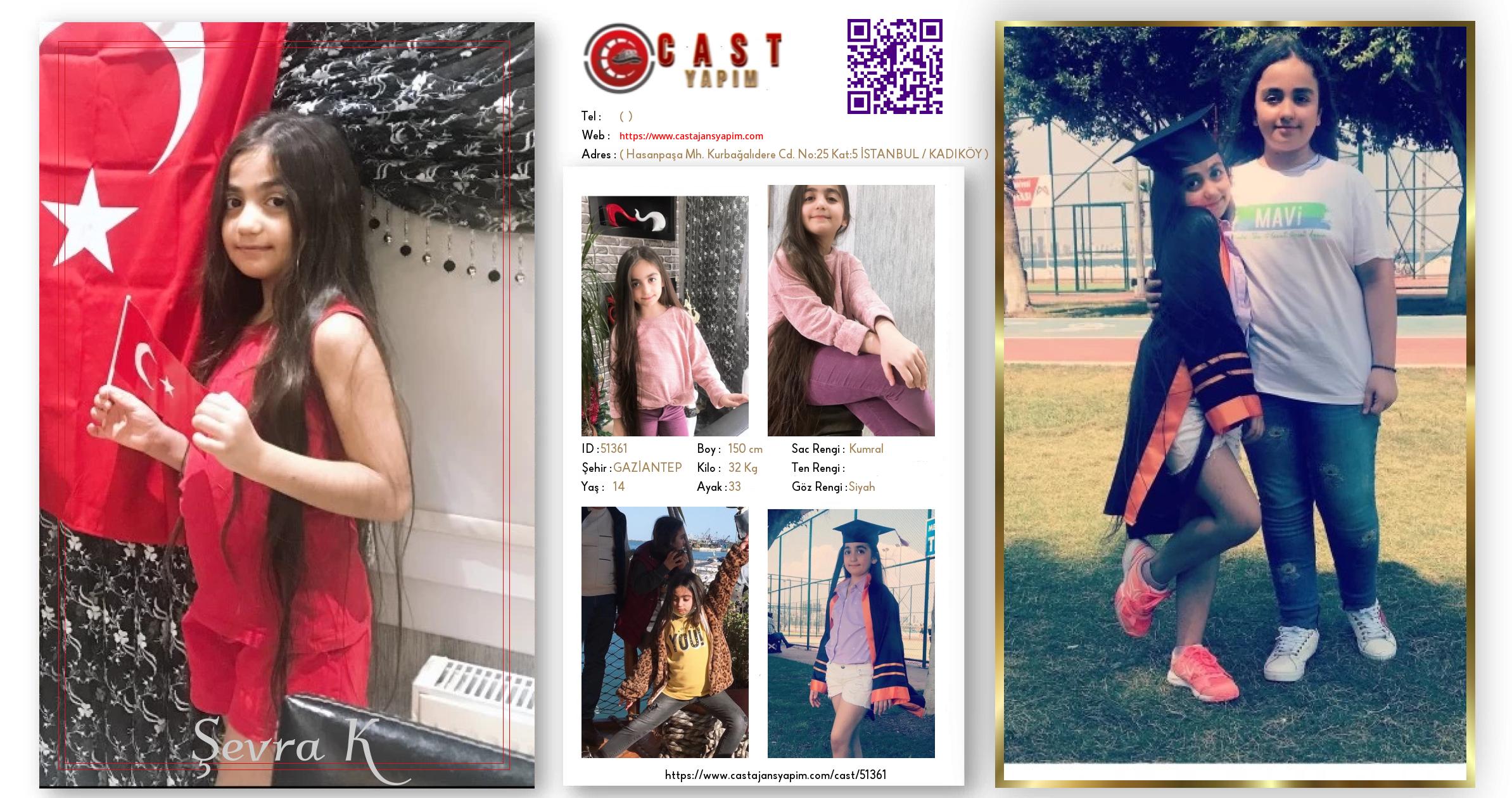 Merhaba, ben Şevra. GAZİANTEP şehrinde yaşıyorum ve 14 yaşındayım. Genel özelliklerim arasında boyum 150 cm, kilom 32 kg, saç rengim Kumral, göz rengim Siyah.