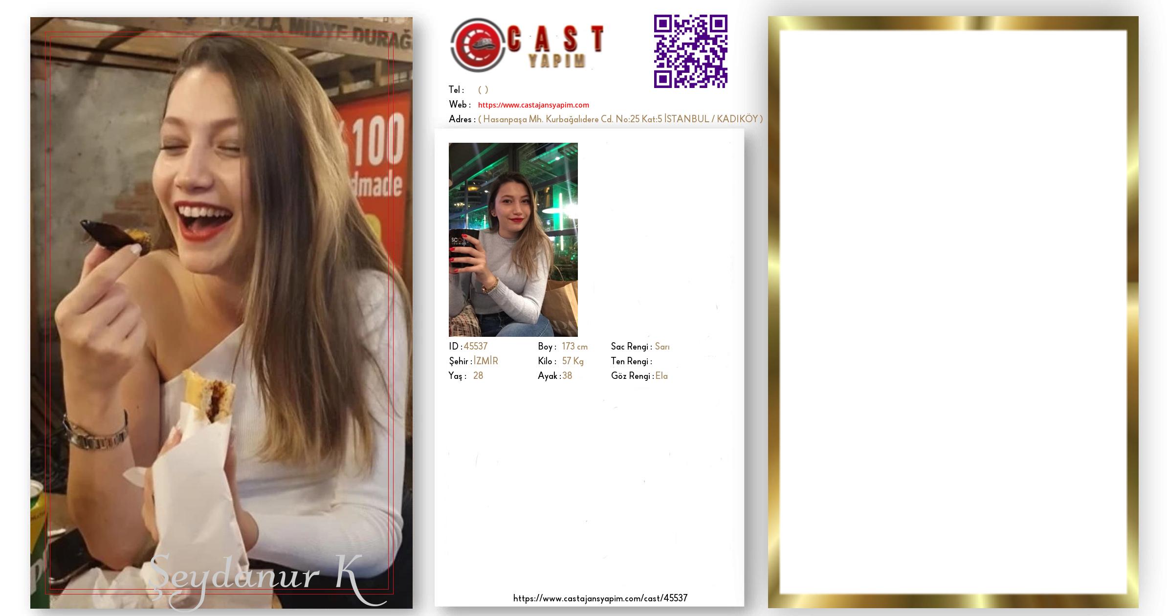 Merhaba, ben Şeydanur. İZMİR şehrinde yaşıyorum ve 28 yaşındayım. Genel özelliklerim arasında boyum 173 cm, kilom 57 kg, saç rengim Sarı, göz rengim Ela.