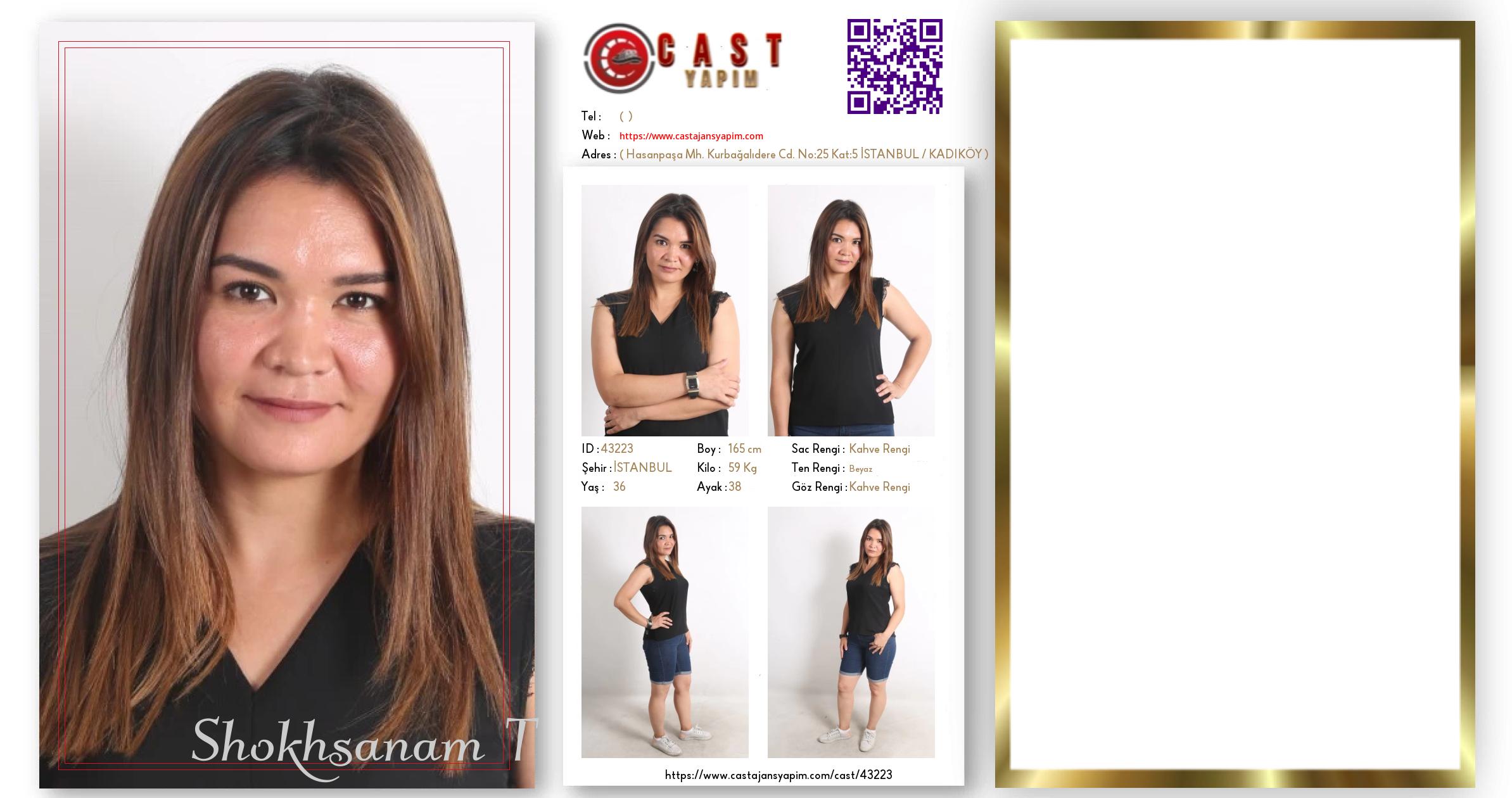 Merhaba, ben Shokhsanam. İSTANBUL şehrinde yaşıyorum ve 36 yaşındayım. Genel özelliklerim arasında boyum 165 cm, kilom 59 kg, saç rengim Kahve Rengi, göz rengim Kahve Rengi, ten rengim Beyaz.