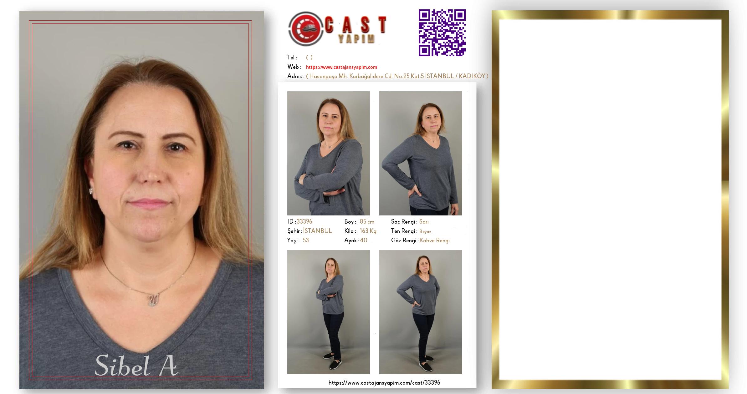 Merhaba, ben Sibel A. İSTANBUL şehrinde yaşıyorum ve 53 yaşındayım. Genel özelliklerim arasında boyum 185 cm, kilom 163 kg, saç rengim Sarı, göz rengim Kahve Rengi, ten rengim Beyaz.