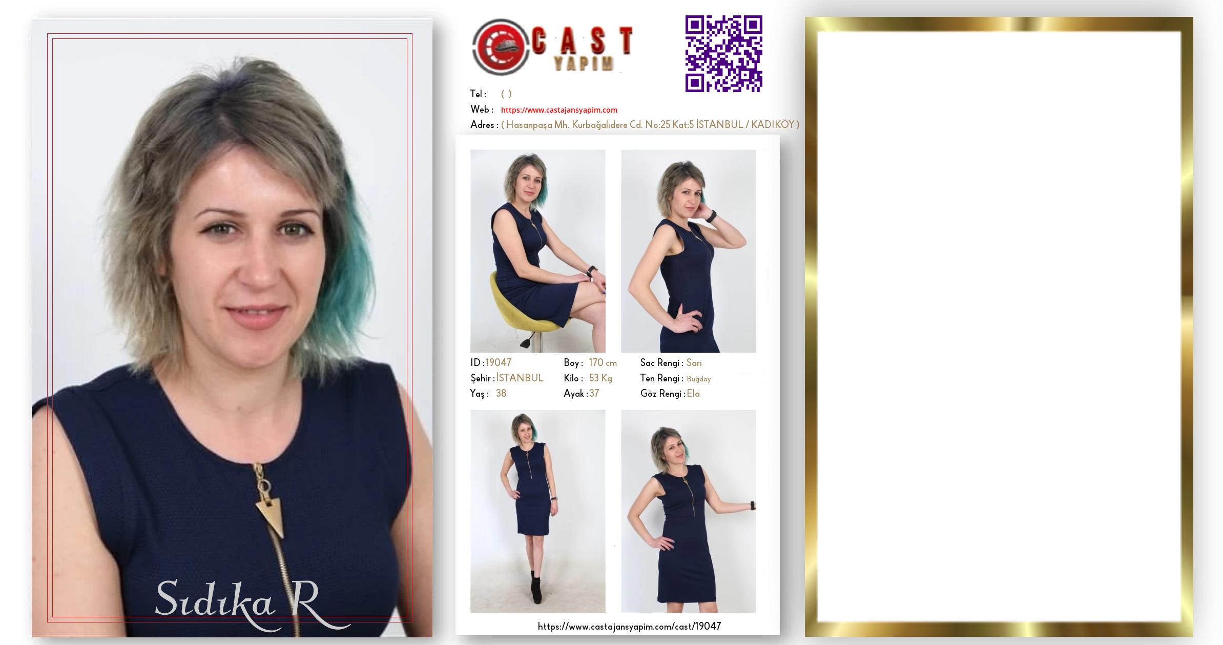 Merhaba, ben Sıdıka Kamil. İSTANBUL şehrinde yaşıyorum ve 38 yaşındayım. Genel özelliklerim arasında boyum 170 cm, kilom 53 kg, saç rengim Sarı, göz rengim Ela, ten rengim Buğday.
