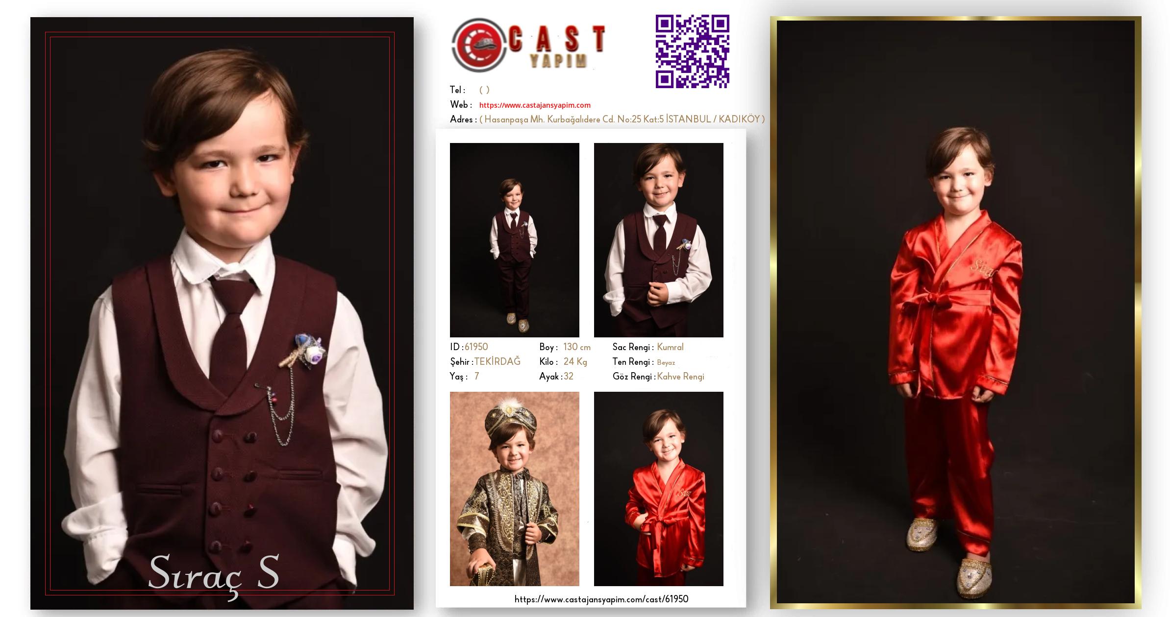 Merhaba, ben Sıraç. TEKİRDAĞ şehrinde yaşıyorum ve 7 yaşındayım. Genel özelliklerim arasında boyum 130 cm, kilom 24 kg, saç rengim Kumral, göz rengim Kahve Rengi, ten rengim Beyaz.