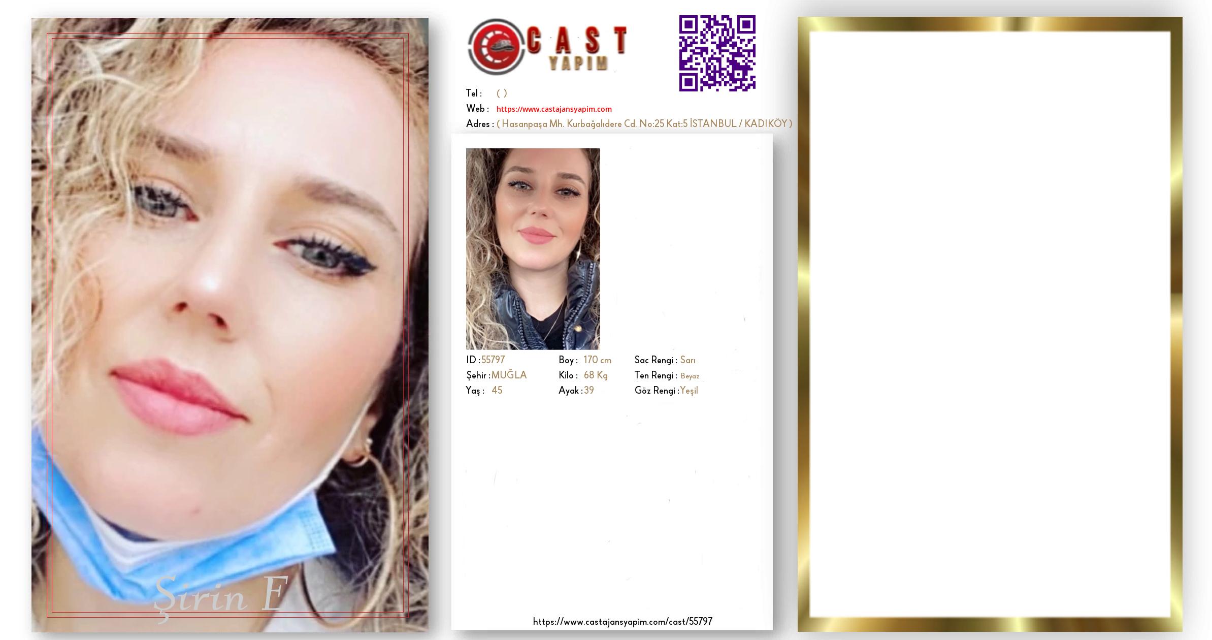 Merhaba, ben Şirin E. MUĞLA şehrinde yaşıyorum ve 45 yaşındayım. Genel özelliklerim arasında boyum 170 cm, kilom 68 kg, saç rengim Sarı, göz rengim Yeşil, ten rengim Beyaz.