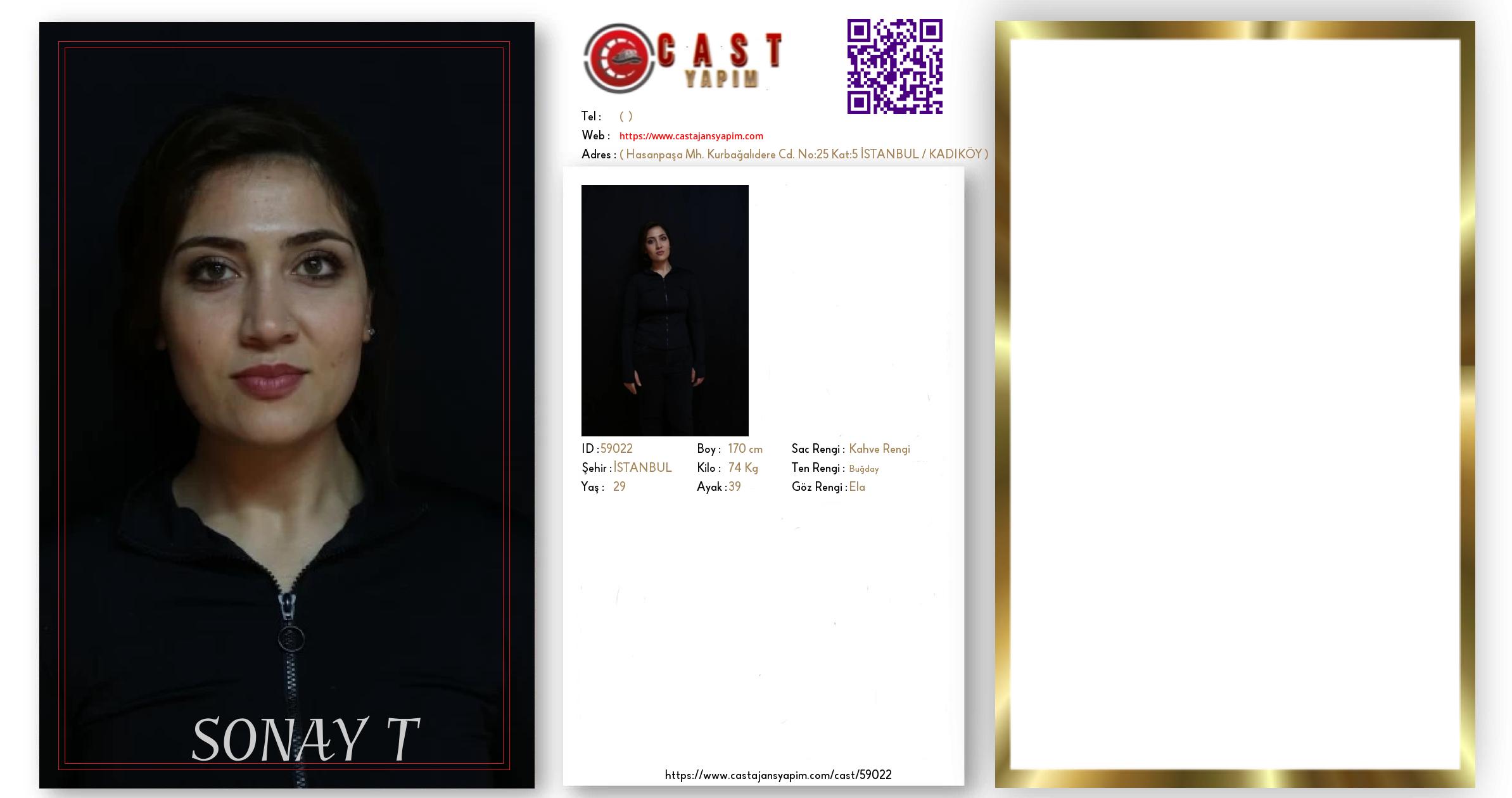 Merhaba, ben SONAY T. İSTANBUL şehrinde yaşıyorum ve 29 yaşındayım. Genel özelliklerim arasında boyum 170 cm, kilom 74 kg, saç rengim Kahve Rengi, göz rengim Ela, ten rengim Buğday.