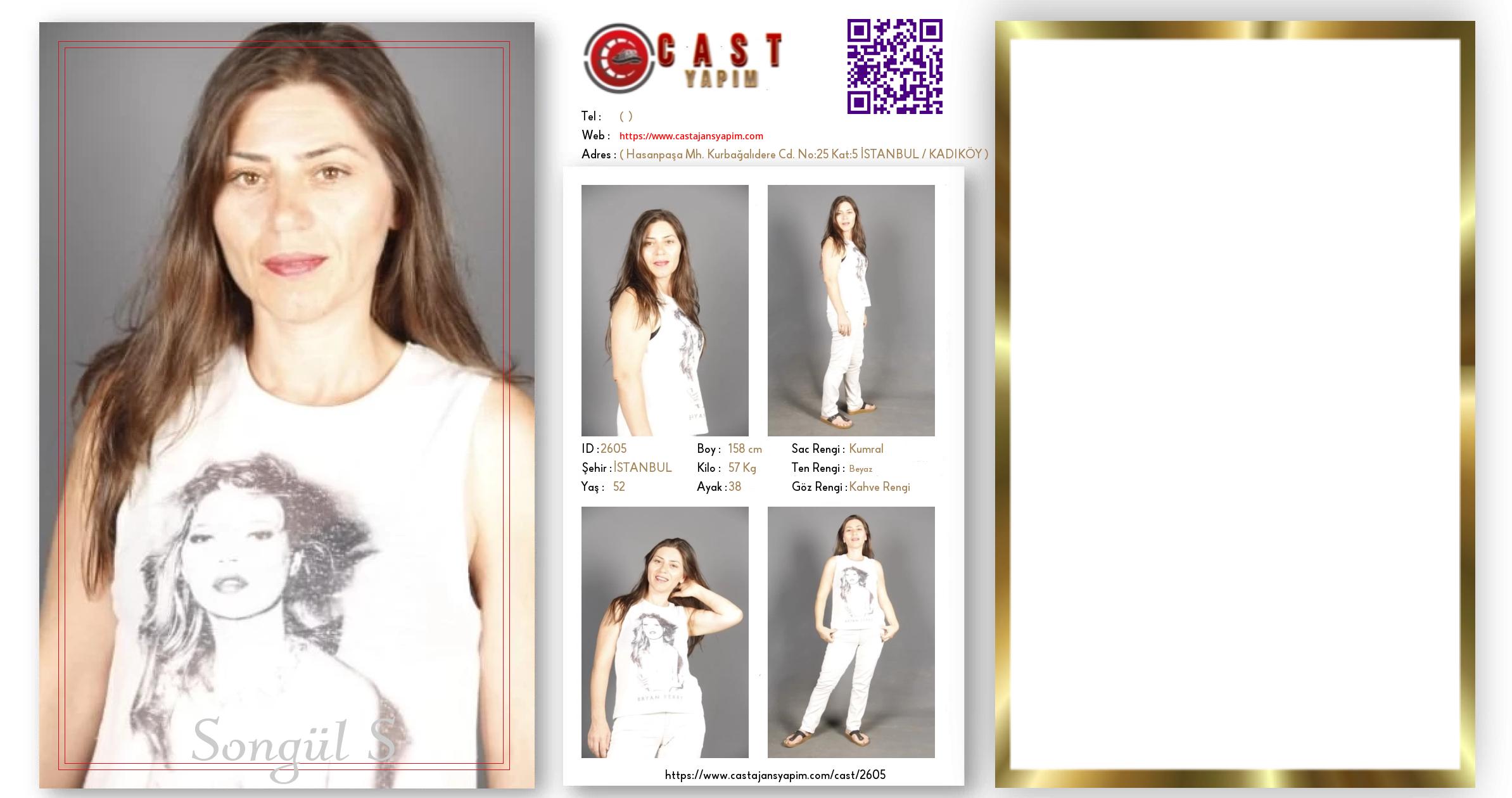 Merhaba, ben Songül. İSTANBUL şehrinde yaşıyorum ve 52 yaşındayım. Genel özelliklerim arasında boyum 158 cm, kilom 57 kg, saç rengim Kumral, göz rengim Kahve Rengi, ten rengim Beyaz.