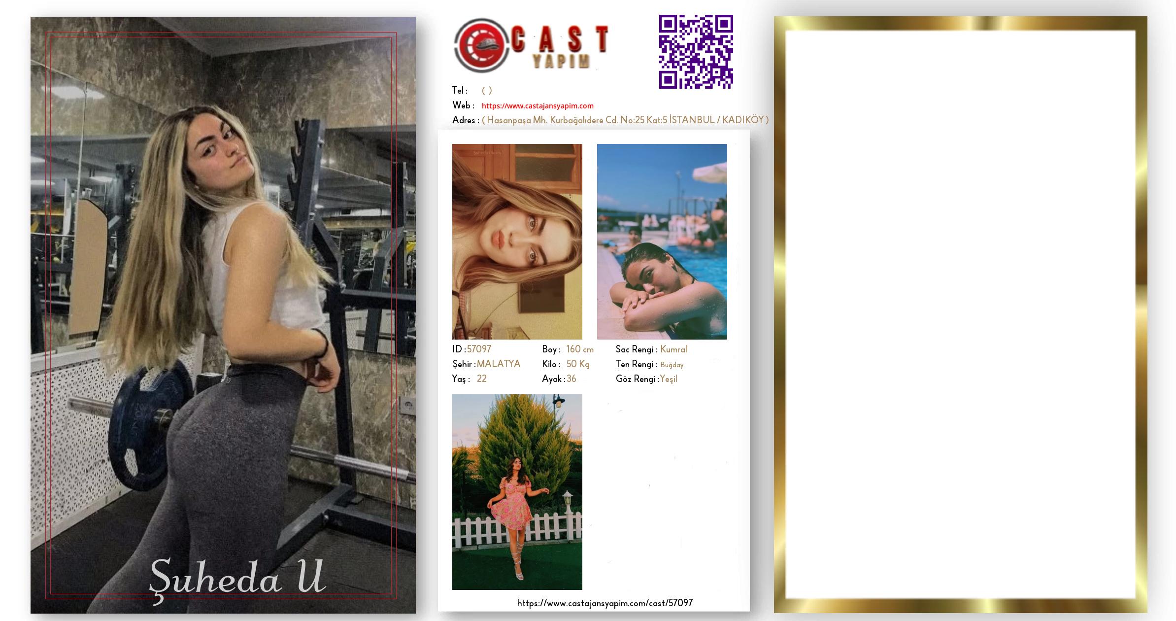 Merhaba, ben Şuheda U. MALATYA şehrinde yaşıyorum ve 22 yaşındayım. Genel özelliklerim arasında boyum 160 cm, kilom 50 kg, saç rengim Kumral, göz rengim Yeşil, ten rengim Buğday.