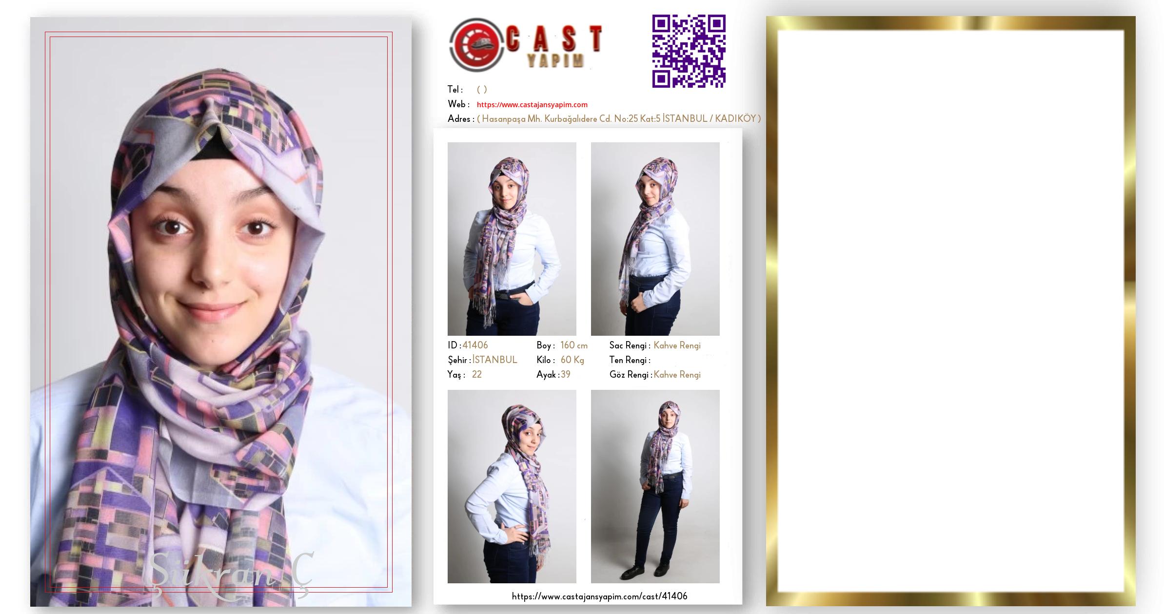 Merhaba, ben Şükran. İSTANBUL şehrinde yaşıyorum ve 22 yaşındayım. Genel özelliklerim arasında boyum 160 cm, kilom 60 kg, saç rengim Kahve Rengi, göz rengim Kahve Rengi.