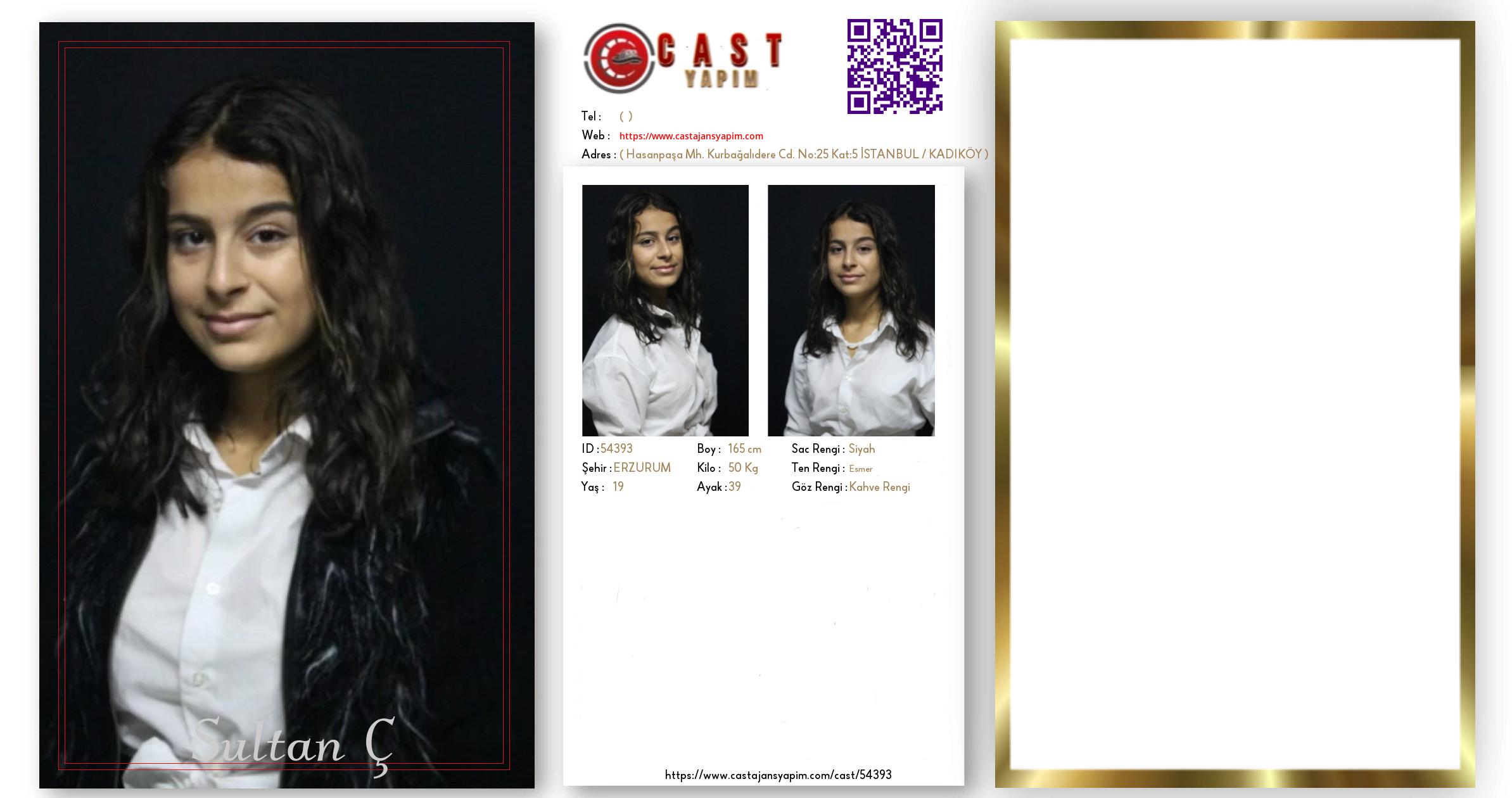 Merhaba, ben Sultan Ç. ERZURUM şehrinde yaşıyorum ve 19 yaşındayım. Genel özelliklerim arasında boyum 165 cm, kilom 50 kg, saç rengim Siyah, göz rengim Kahve Rengi, ten rengim Esmer.