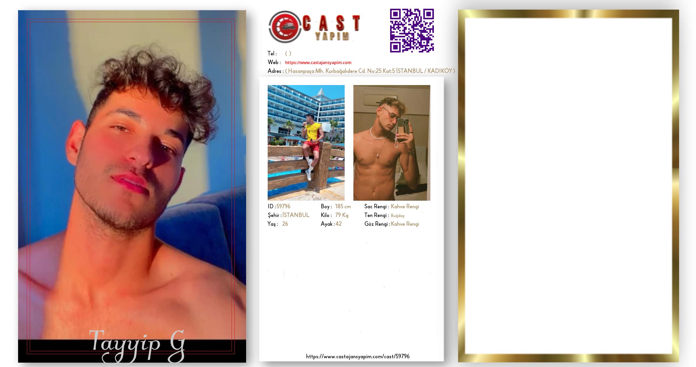 Merhaba, ben Tayyip G. İSTANBUL şehrinde yaşıyorum ve 26 yaşındayım. Genel özelliklerim arasında boyum 185 cm, kilom 79 kg, saç rengim Kahve Rengi, göz rengim Kahve Rengi, ten rengim Buğday.