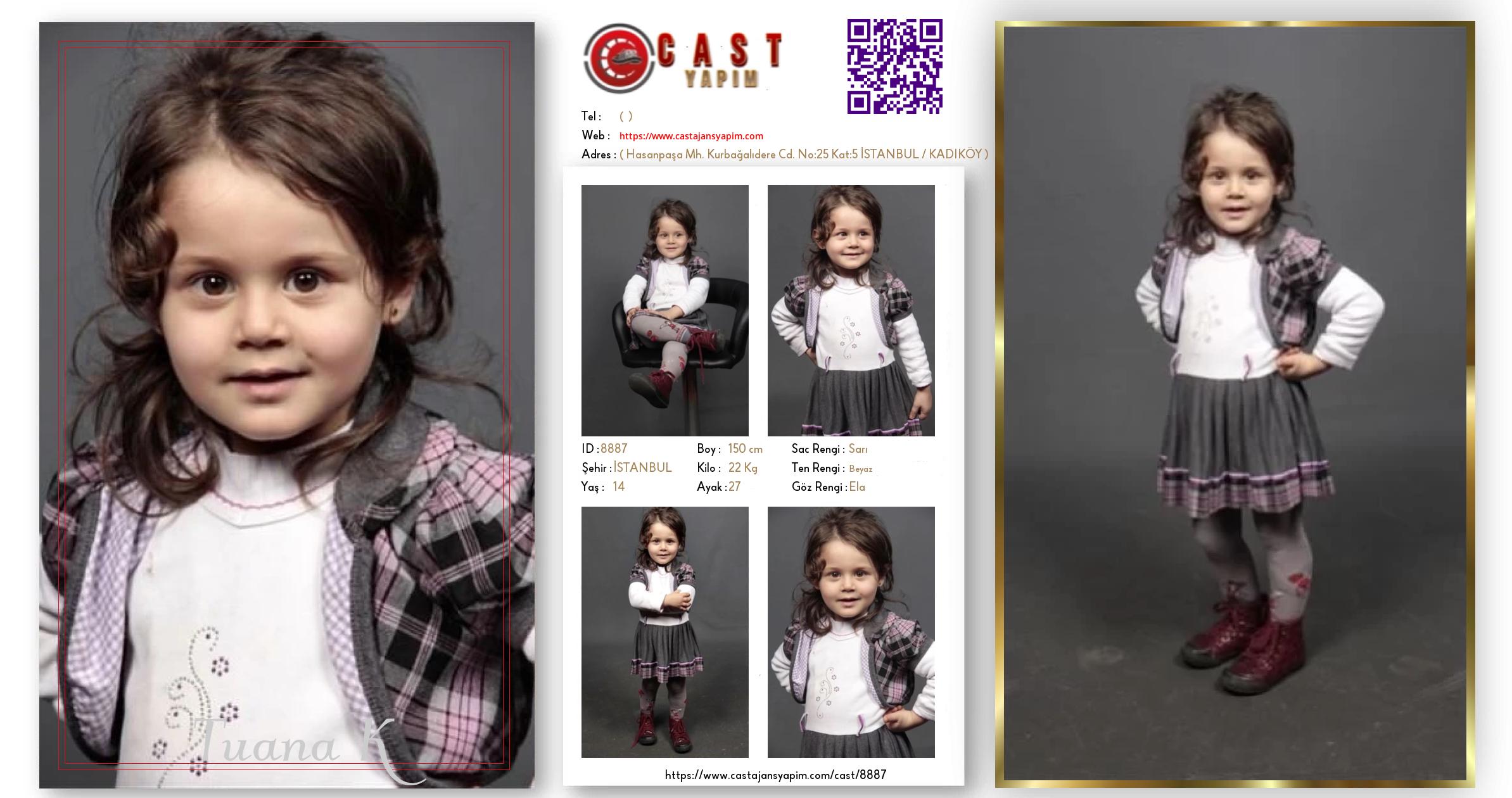 Merhaba, ben Tuana K. İSTANBUL şehrinde yaşıyorum ve 14 yaşındayım. Genel özelliklerim arasında boyum 150 cm, kilom 22 kg, saç rengim Sarı, göz rengim Ela, ten rengim Beyaz.