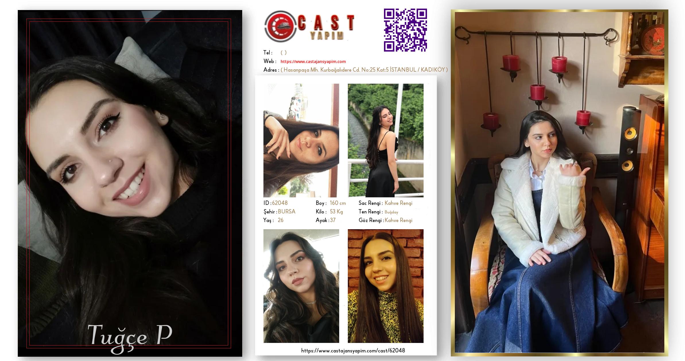 Merhaba, ben Tuğçe P. BURSA şehrinde yaşıyorum ve 26 yaşındayım. Genel özelliklerim arasında boyum 160 cm, kilom 53 kg, saç rengim Kahve Rengi, göz rengim Kahve Rengi, ten rengim Buğday.