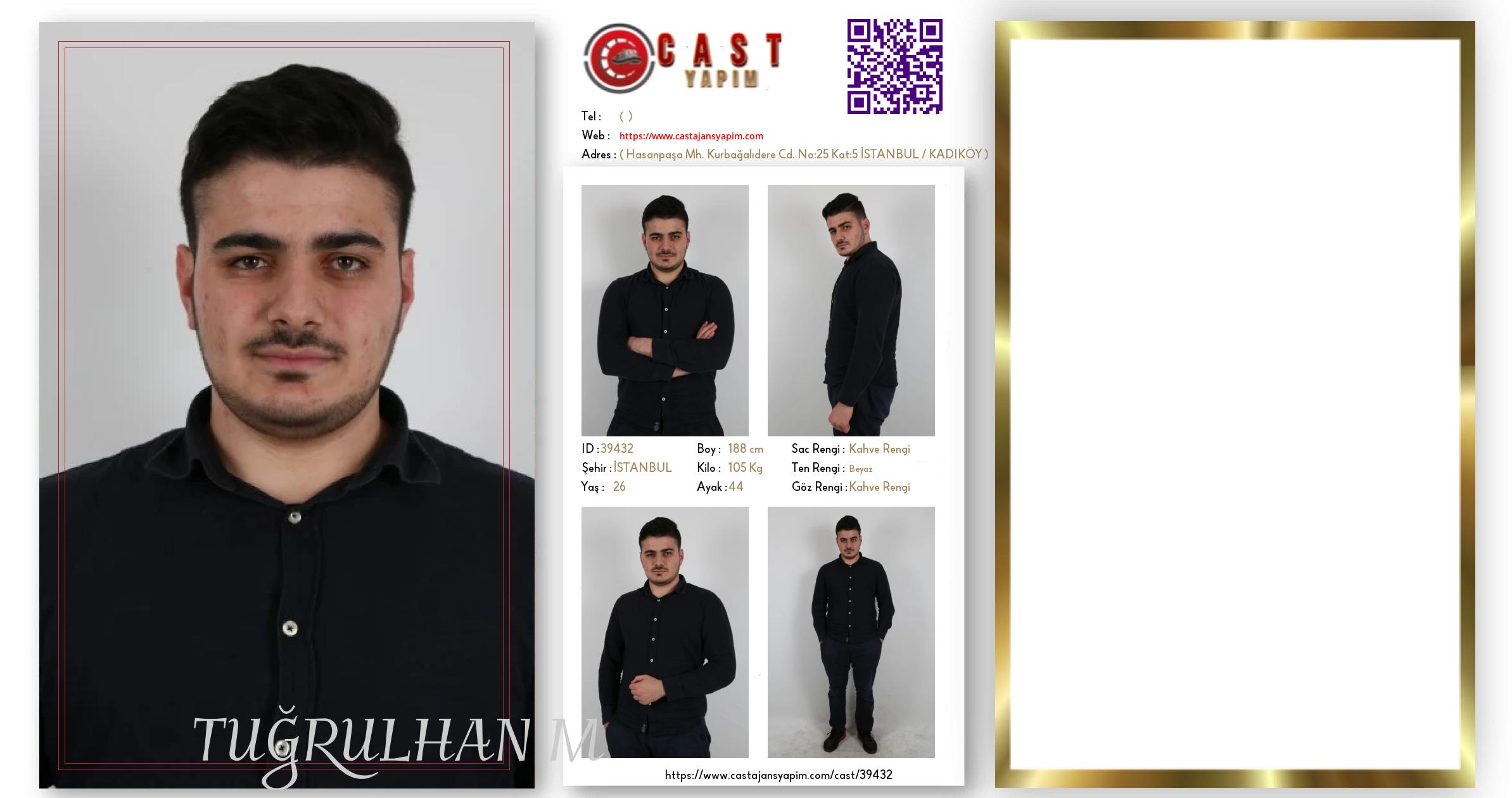 Merhaba, ben TUĞRULHAN. İSTANBUL şehrinde yaşıyorum ve 26 yaşındayım. Genel özelliklerim arasında boyum 188 cm, kilom 105 kg, saç rengim Kahve Rengi, göz rengim Kahve Rengi, ten rengim Beyaz.