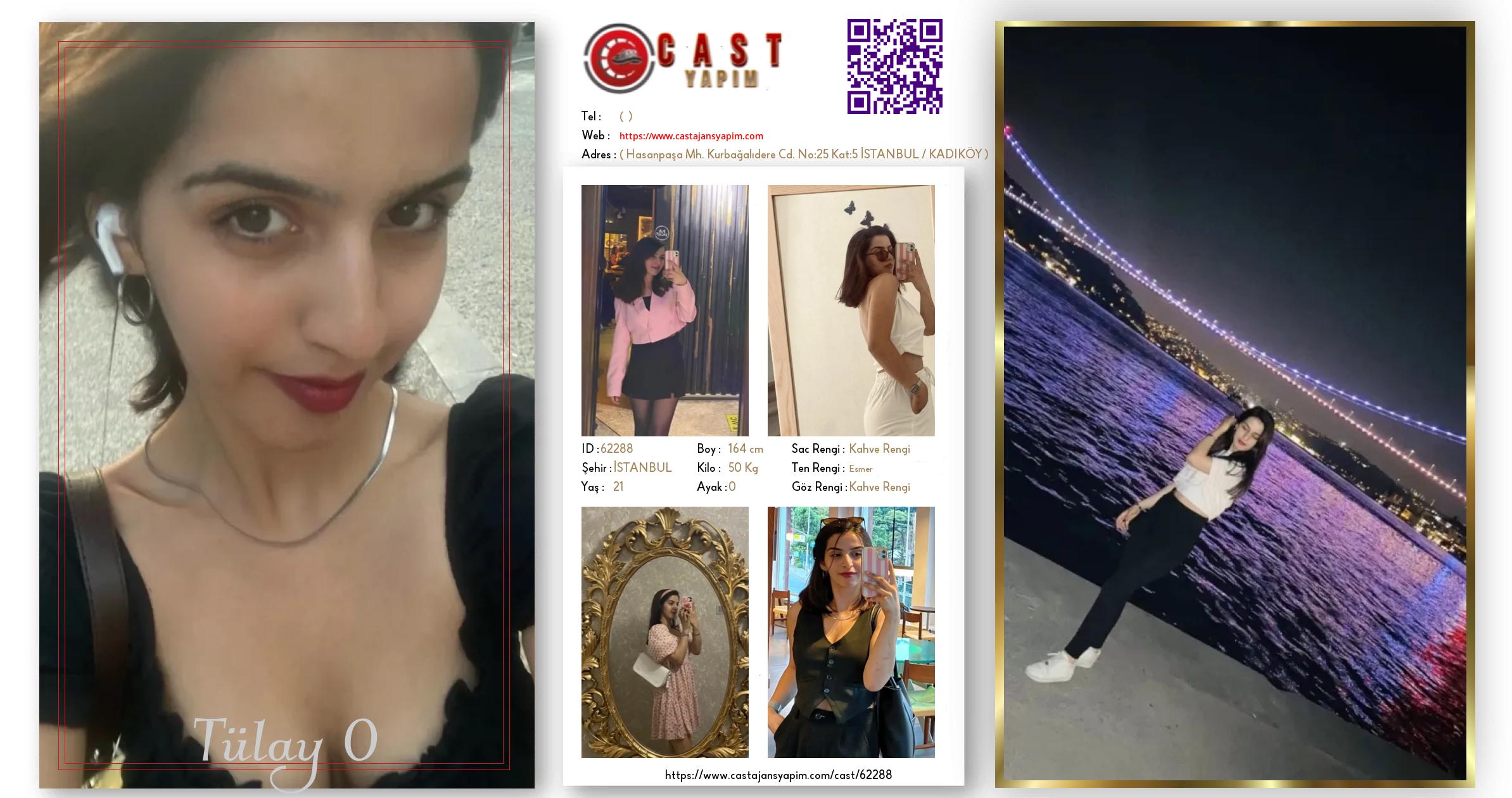 Merhaba, ben Tülay. İSTANBUL şehrinde yaşıyorum ve 21 yaşındayım. Genel özelliklerim arasında boyum 164 cm, kilom 50 kg, saç rengim Kahve Rengi, göz rengim Kahve Rengi, ten rengim Esmer.