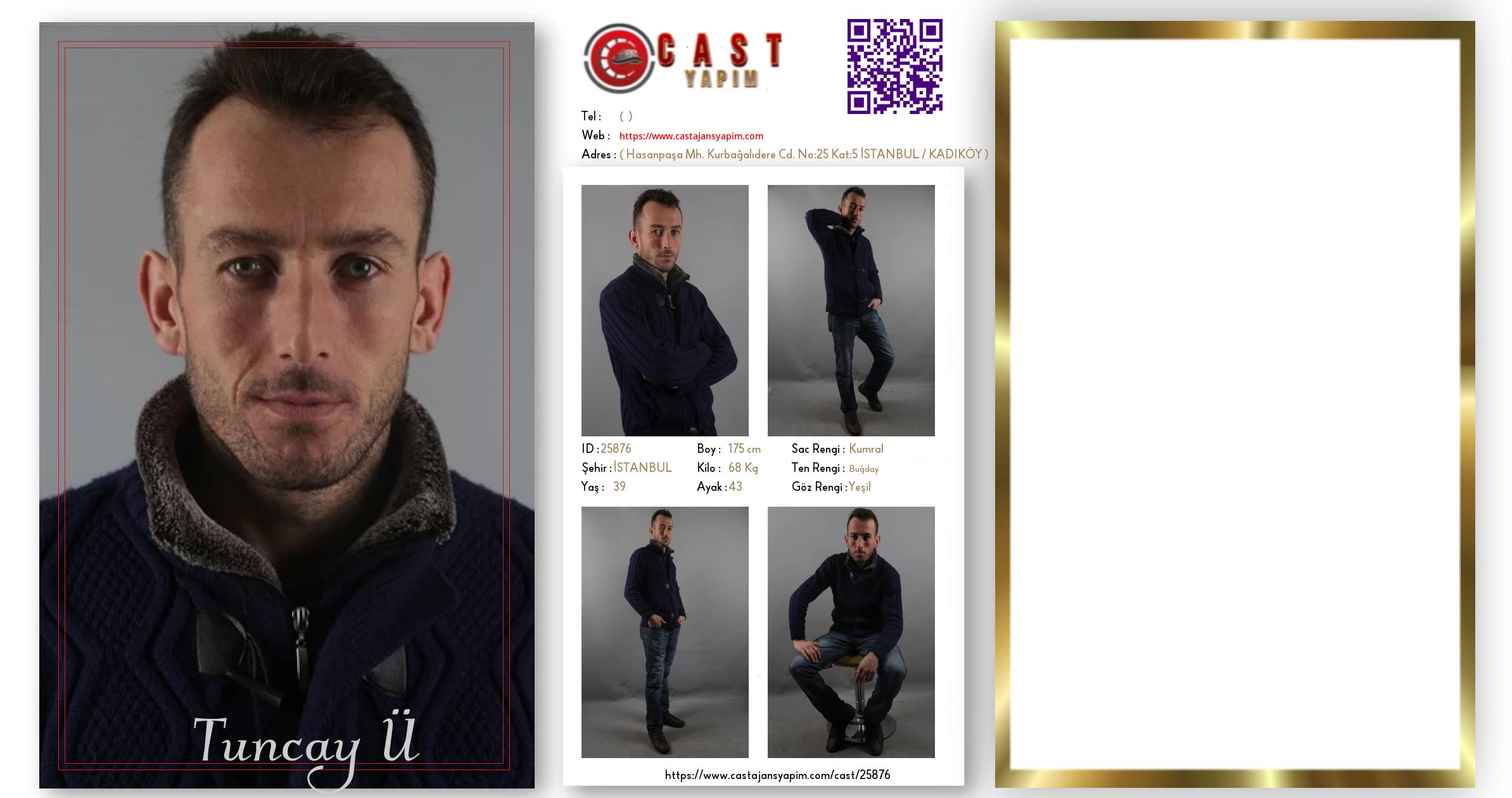 Merhaba, ben Tuncay Ü. İSTANBUL şehrinde yaşıyorum ve 39 yaşındayım. Genel özelliklerim arasında boyum 175 cm, kilom 68 kg, saç rengim Kumral, göz rengim Yeşil, ten rengim Buğday.
