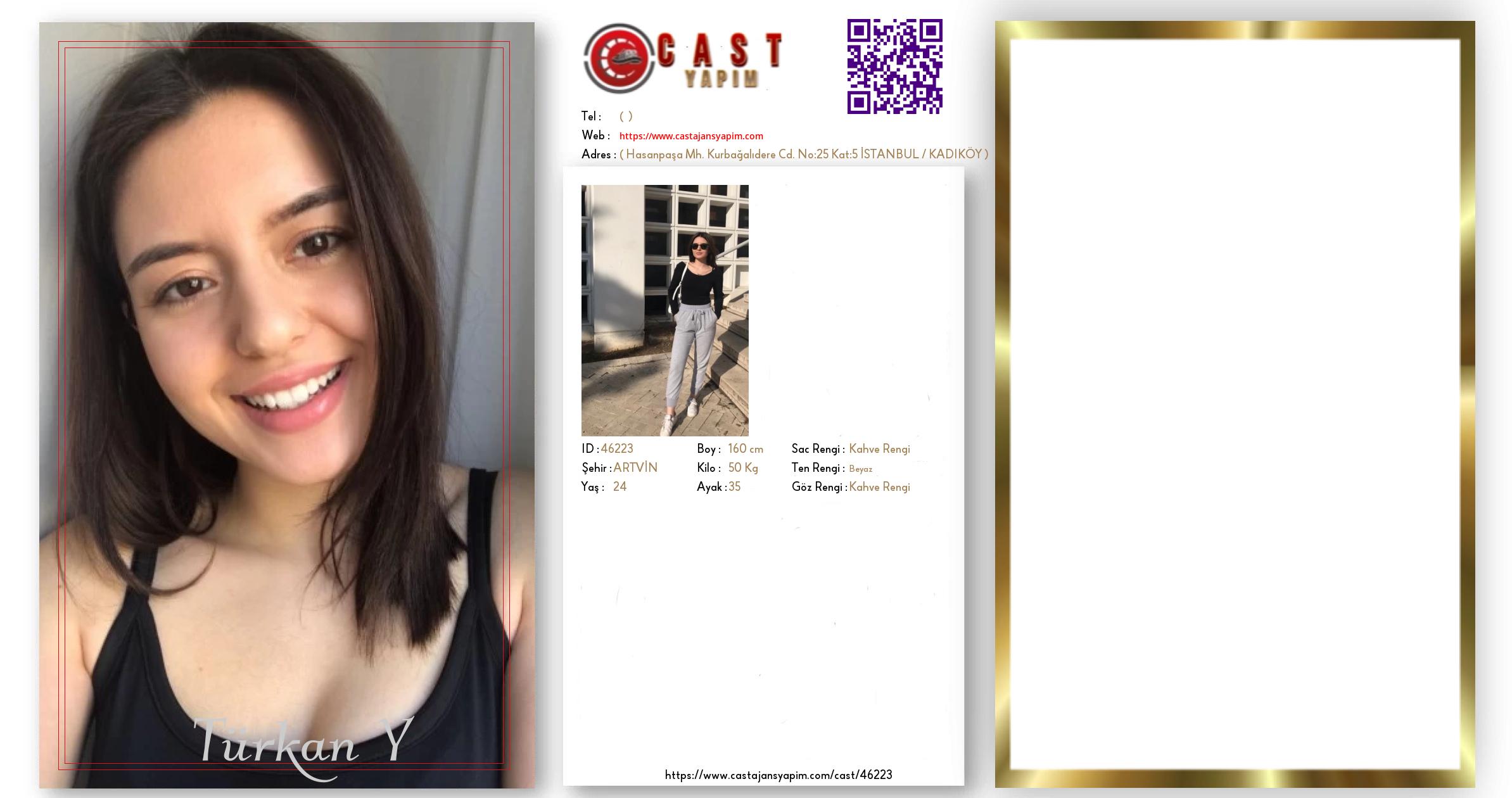 Merhaba, ben Türkan İrem. ARTVİN şehrinde yaşıyorum ve 24 yaşındayım. Genel özelliklerim arasında boyum 160 cm, kilom 50 kg, saç rengim Kahve Rengi, göz rengim Kahve Rengi, ten rengim Beyaz.