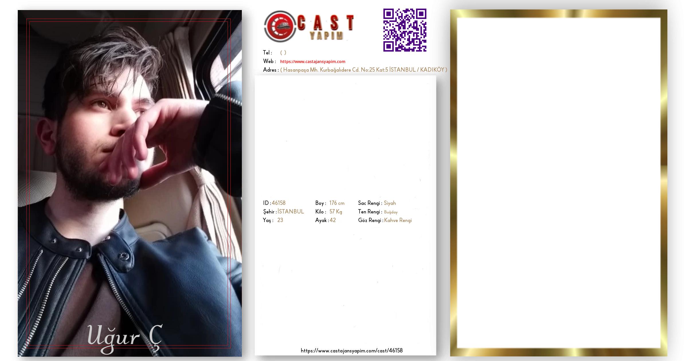 Merhaba, ben Uğur. İSTANBUL şehrinde yaşıyorum ve 23 yaşındayım. Genel özelliklerim arasında boyum 176 cm, kilom 57 kg, saç rengim Siyah, göz rengim Kahve Rengi, ten rengim Buğday.