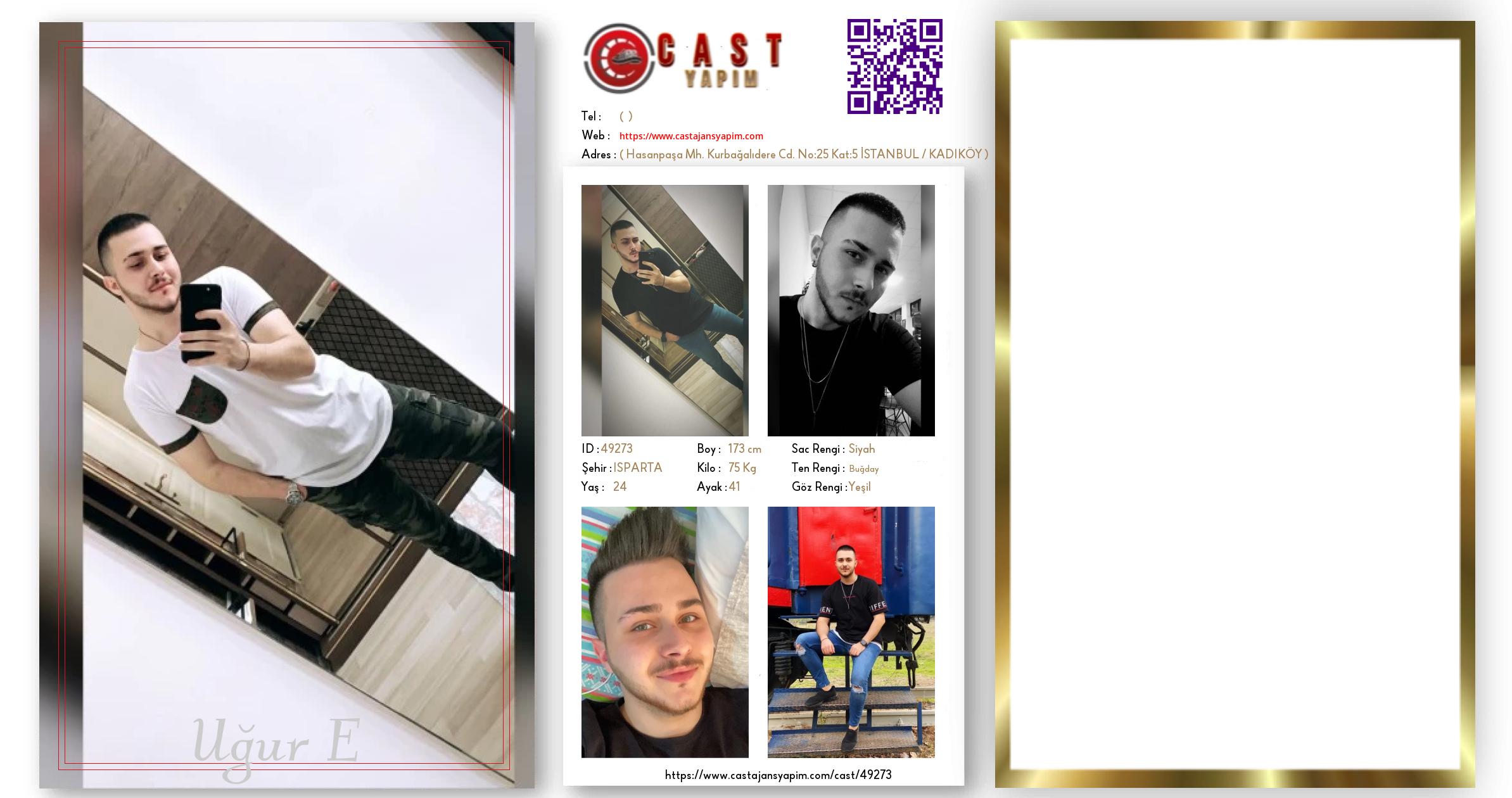 Merhaba, ben Uğur E. ISPARTA şehrinde yaşıyorum ve 24 yaşındayım. Genel özelliklerim arasında boyum 173 cm, kilom 75 kg, saç rengim Siyah, göz rengim Yeşil, ten rengim Buğday.