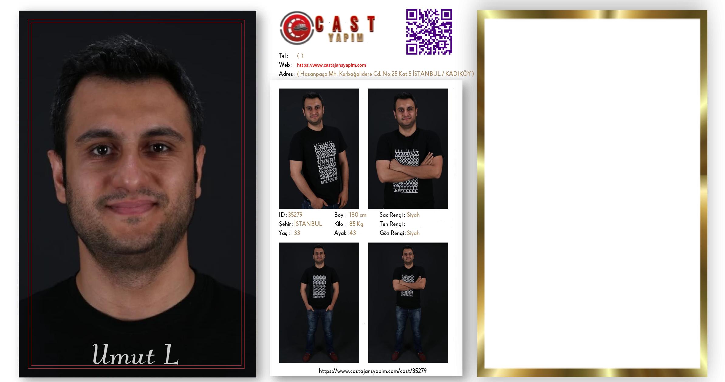 Merhaba, ben Umut. İSTANBUL şehrinde yaşıyorum ve 33 yaşındayım. Genel özelliklerim arasında boyum 180 cm, kilom 85 kg, saç rengim Siyah, göz rengim Siyah.