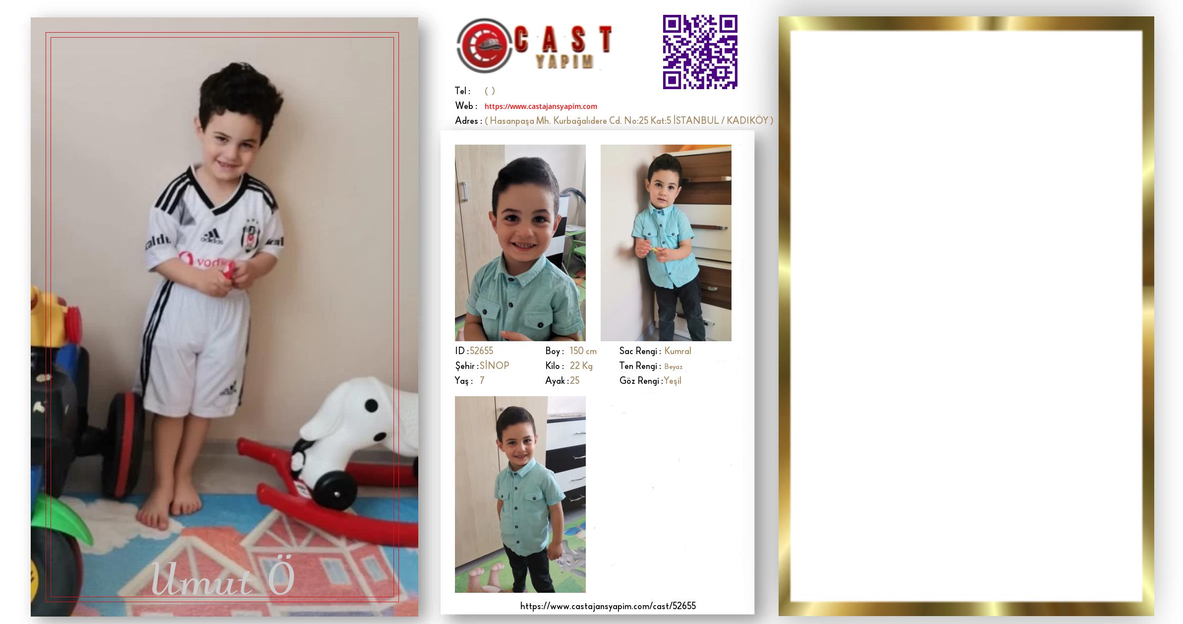 Merhaba, ben Umut Ö. SİNOP şehrinde yaşıyorum ve 7 yaşındayım. Genel özelliklerim arasında boyum 150 cm, kilom 22 kg, saç rengim Kumral, göz rengim Yeşil, ten rengim Beyaz.