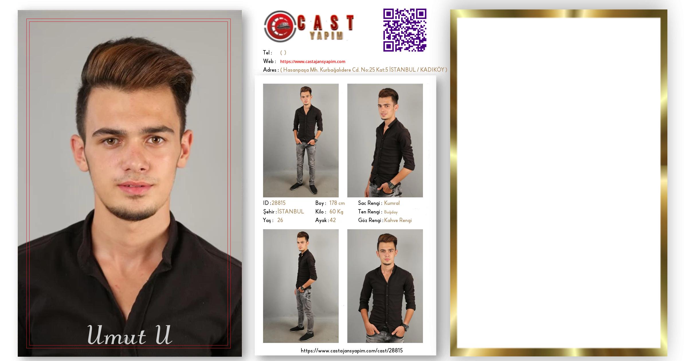 Merhaba, ben Umut U. İSTANBUL şehrinde yaşıyorum ve 26 yaşındayım. Genel özelliklerim arasında boyum 178 cm, kilom 60 kg, saç rengim Kumral, göz rengim Kahve Rengi, ten rengim Buğday.