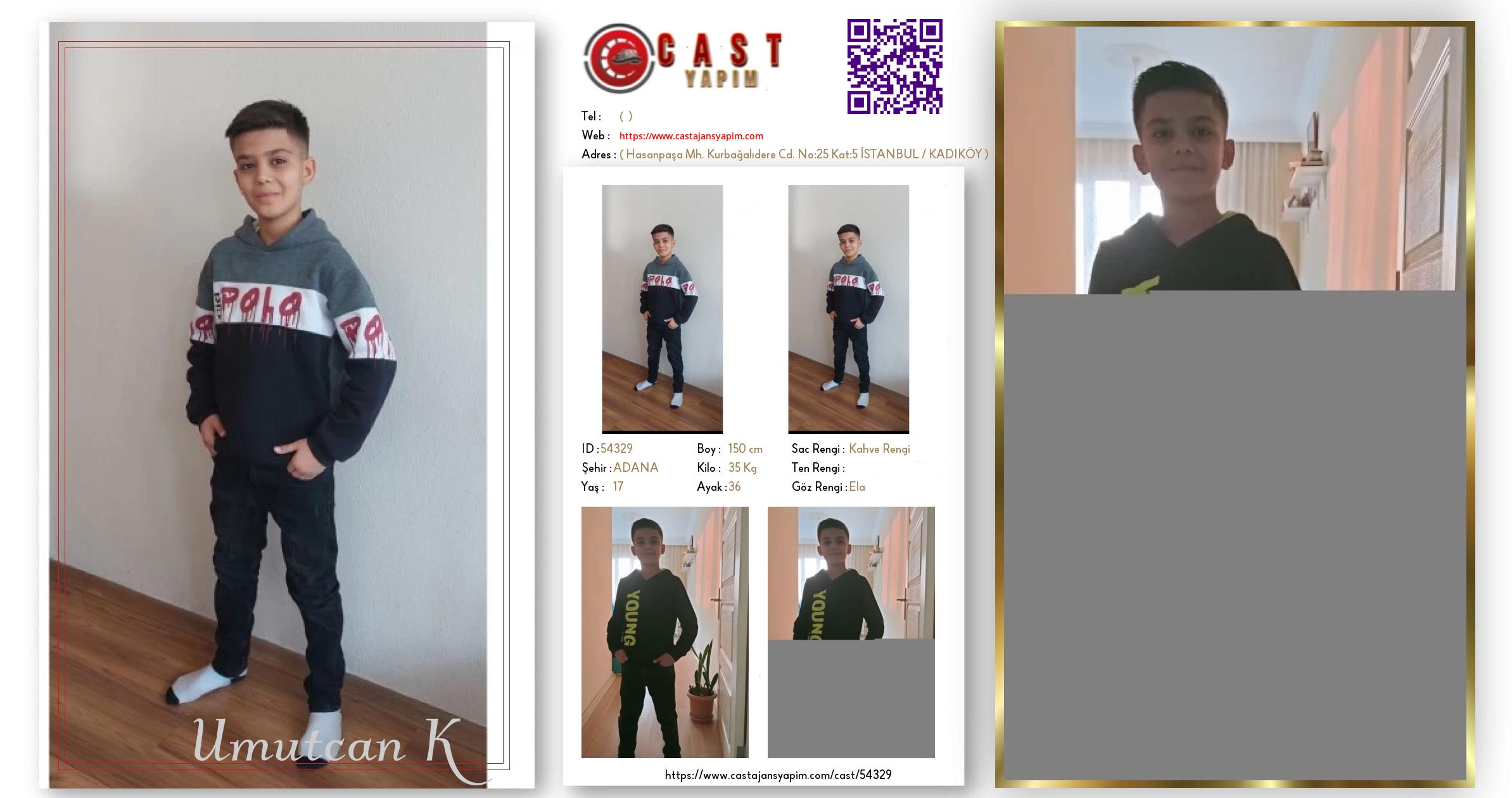 Merhaba, ben Umutcan. ADANA şehrinde yaşıyorum ve 17 yaşındayım. Genel özelliklerim arasında boyum 150 cm, kilom 35 kg, saç rengim Kahve Rengi, göz rengim Ela.